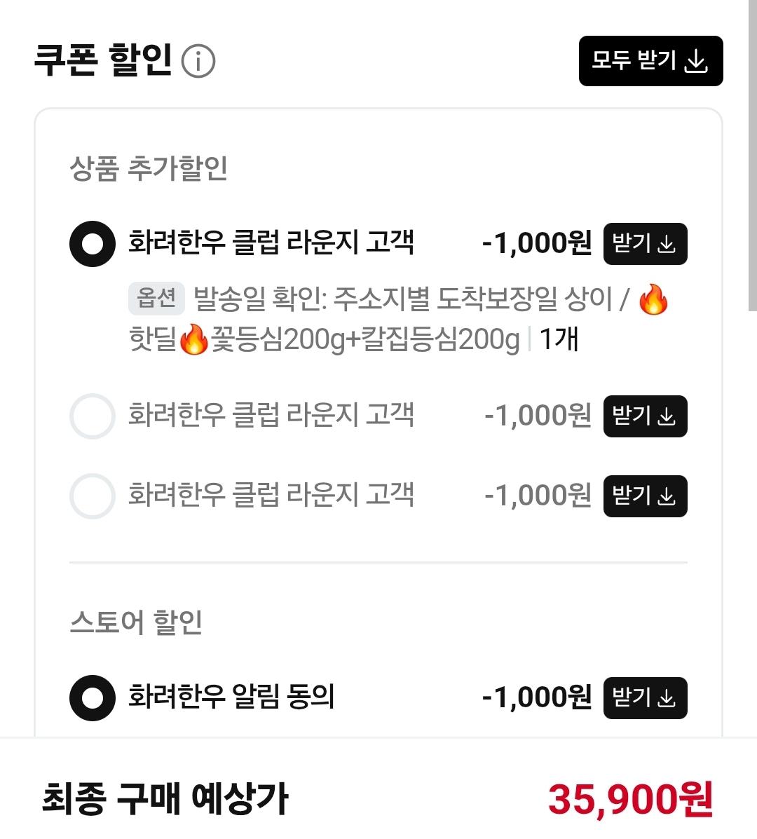 라운지쿠폰 천원, 알림받기 쿠폰 천원 적용시 35,900원 나오는데