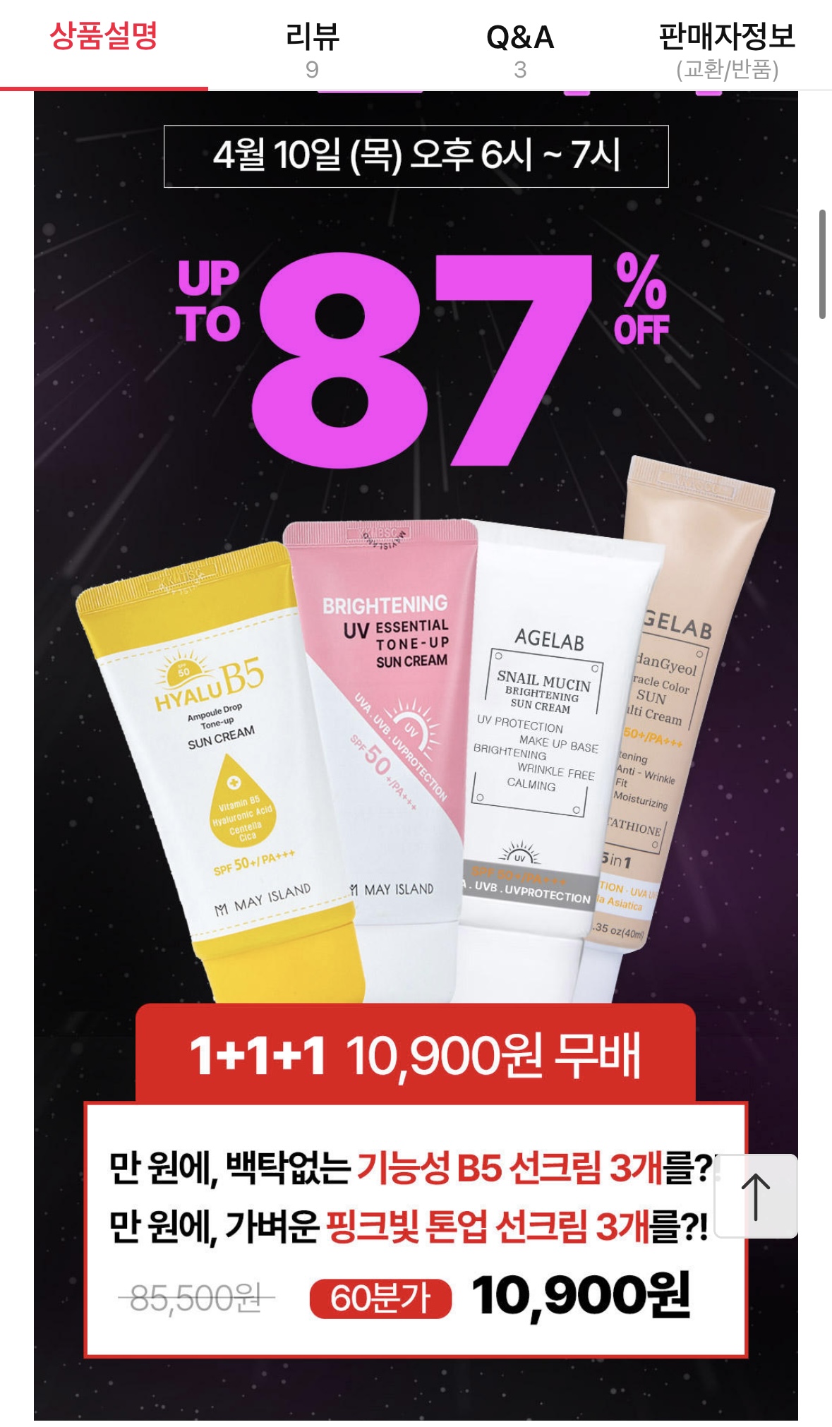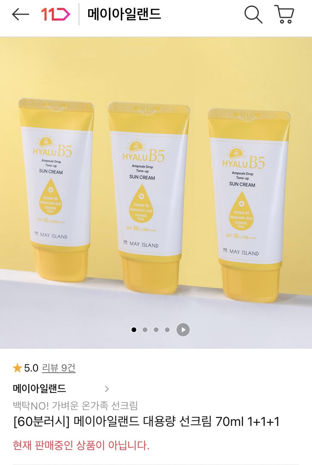 [11번가] 메이아일랜드 히알루 B5 선크림 70ml 1+1+1 (60분러시)(10,900원/무료) > 국내핫딜