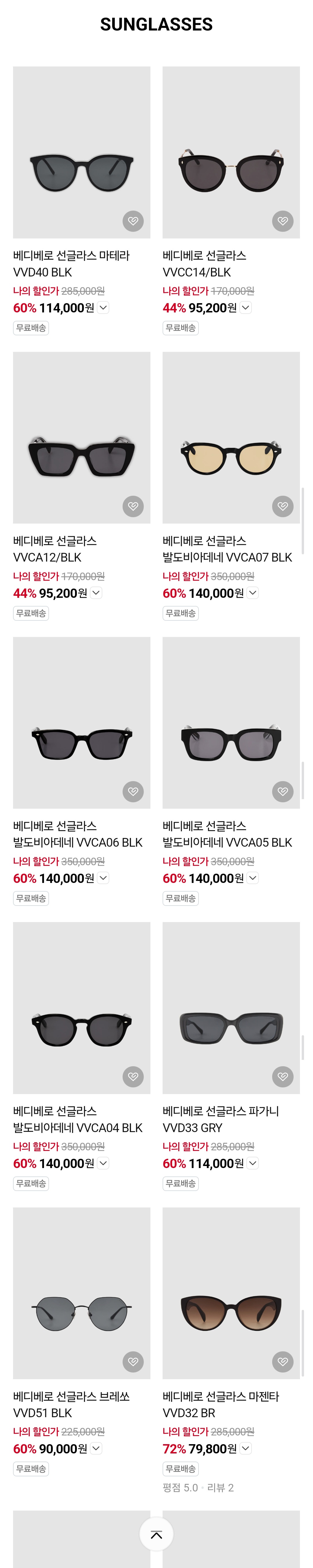 [네이버] 베디베로 선글라스 21종 최대 72% 할인 (다양/무배) > 국내핫딜
