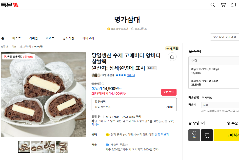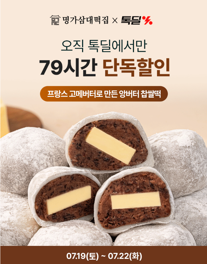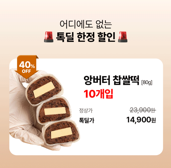 [카카오 톡딜] 명가삼대떡집 앙버터찹쌀떡 10개 (14,900원/무배) > 국내핫딜