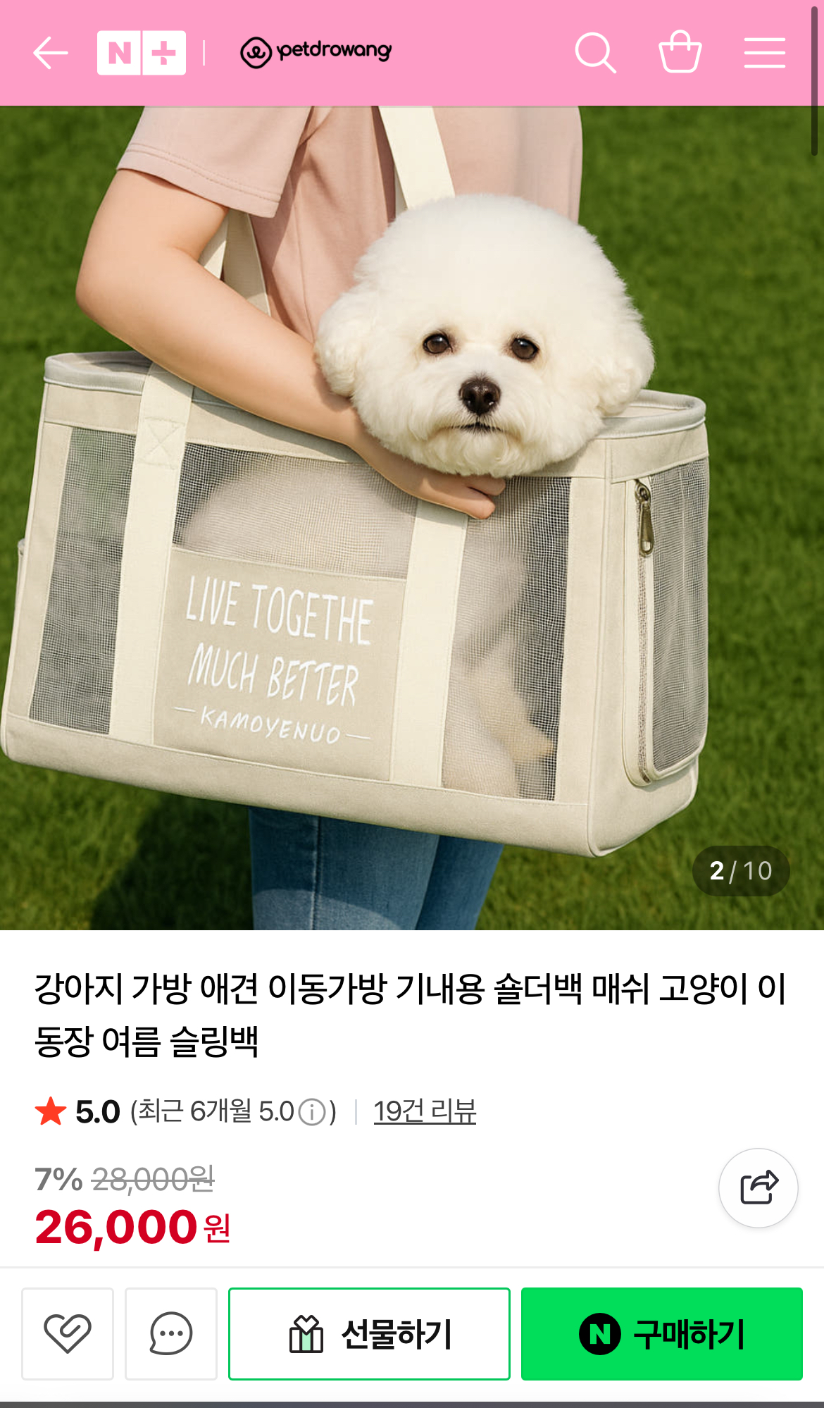 [네이버] 고양이/강아지 여름용 이동가방 (26,000원/유배)