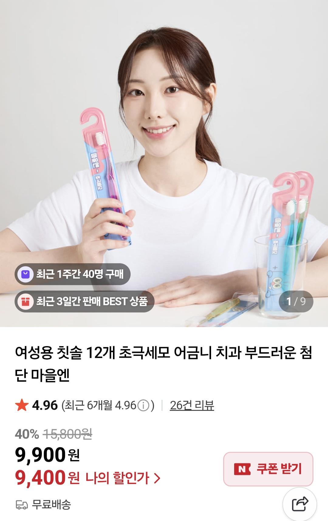 [네이버] 국산 초극세사모 칫솔 12개 (9,400원/무료) > 국내핫딜