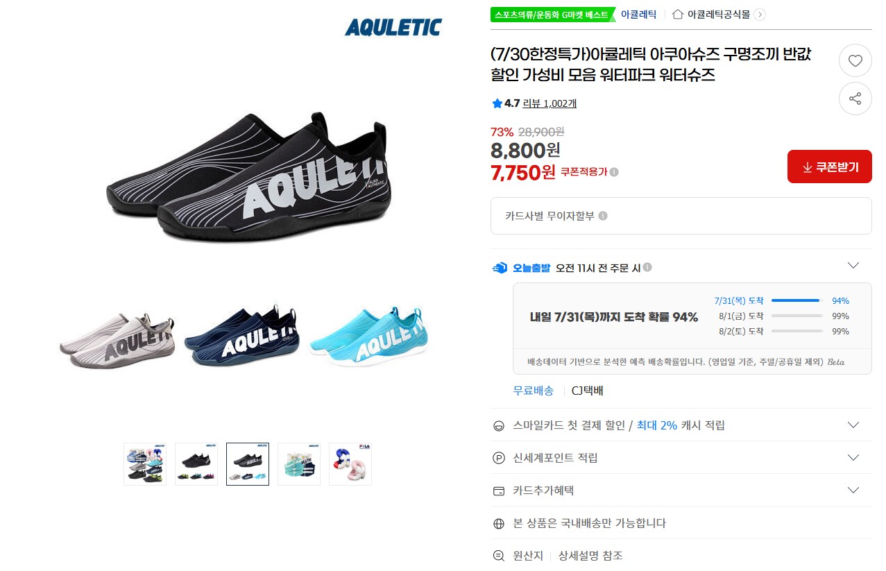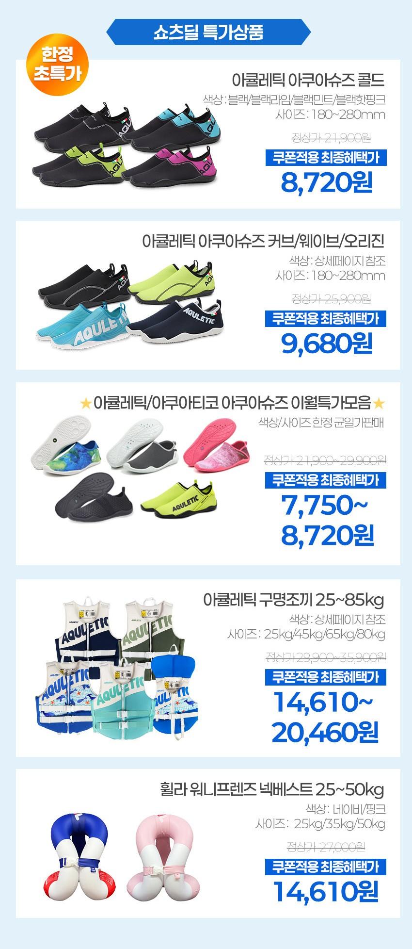 옵션 다양하게 있고 아쿠아슈즈 뿐만 아니라 구명조끼 등 다른 제품도 있어서