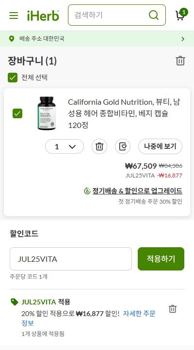 JUL25VITA 할인코드 입력하시면 20% 할인까지 가능하오니 참고하세요