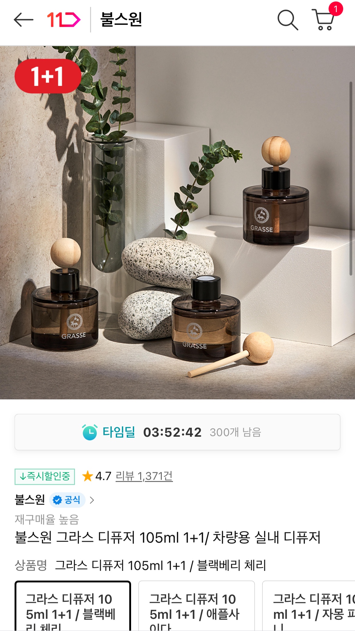 [11번가] 불스원 그라스 디퓨저 105ml 1+1 (16,900원/무료) > 국내핫딜