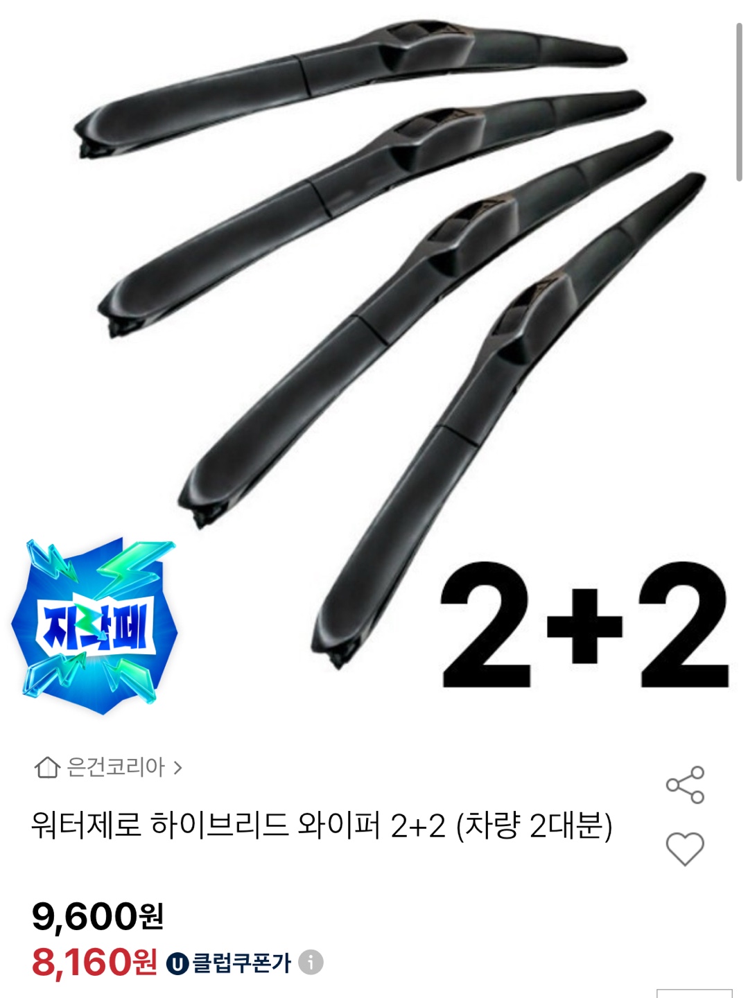 [옥션] 워터제로 하이브리드 와이퍼 2+2 유클 (8,160원/무료)
