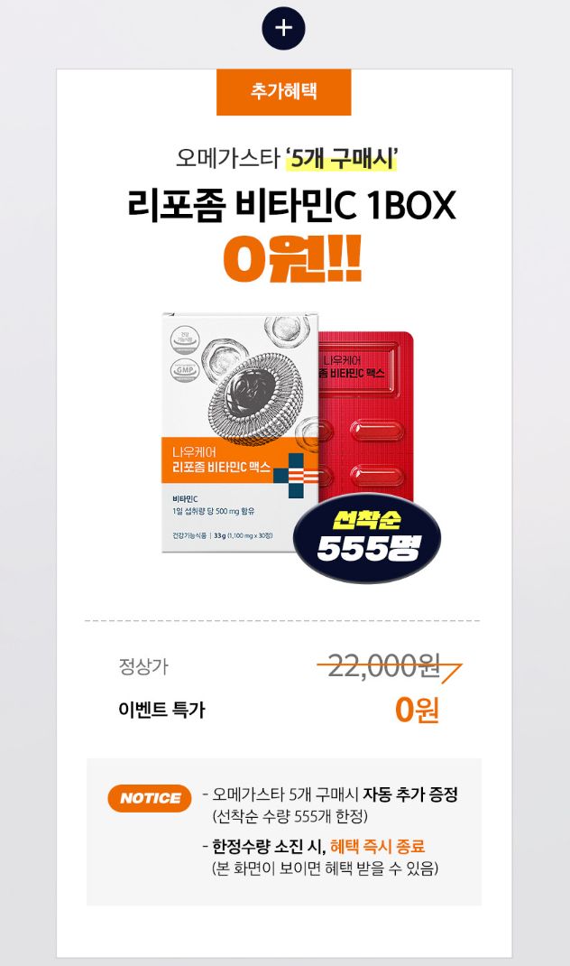 가급적 5개 이상 구매하셔서, 리포좀 비타민C 1박스도 같이 받아가시면 좋을것 같습니다.