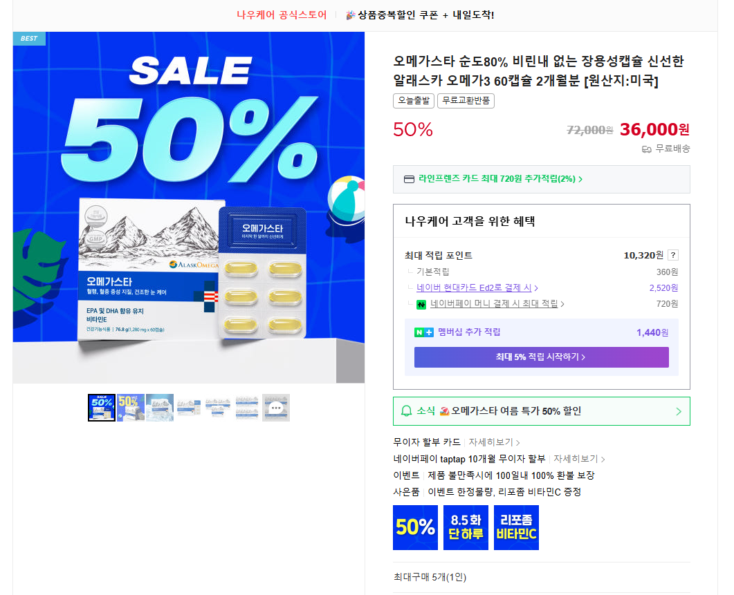 오늘한정딜로 오메가3 반값에 나와있습니다.