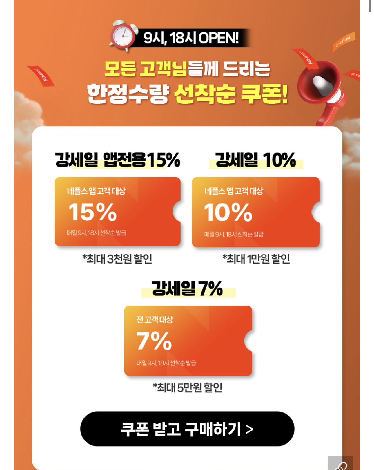 매일 오전 9시, 오후 6시에 강세일 쿠폰 적용하면 가격 괜찮습니다.