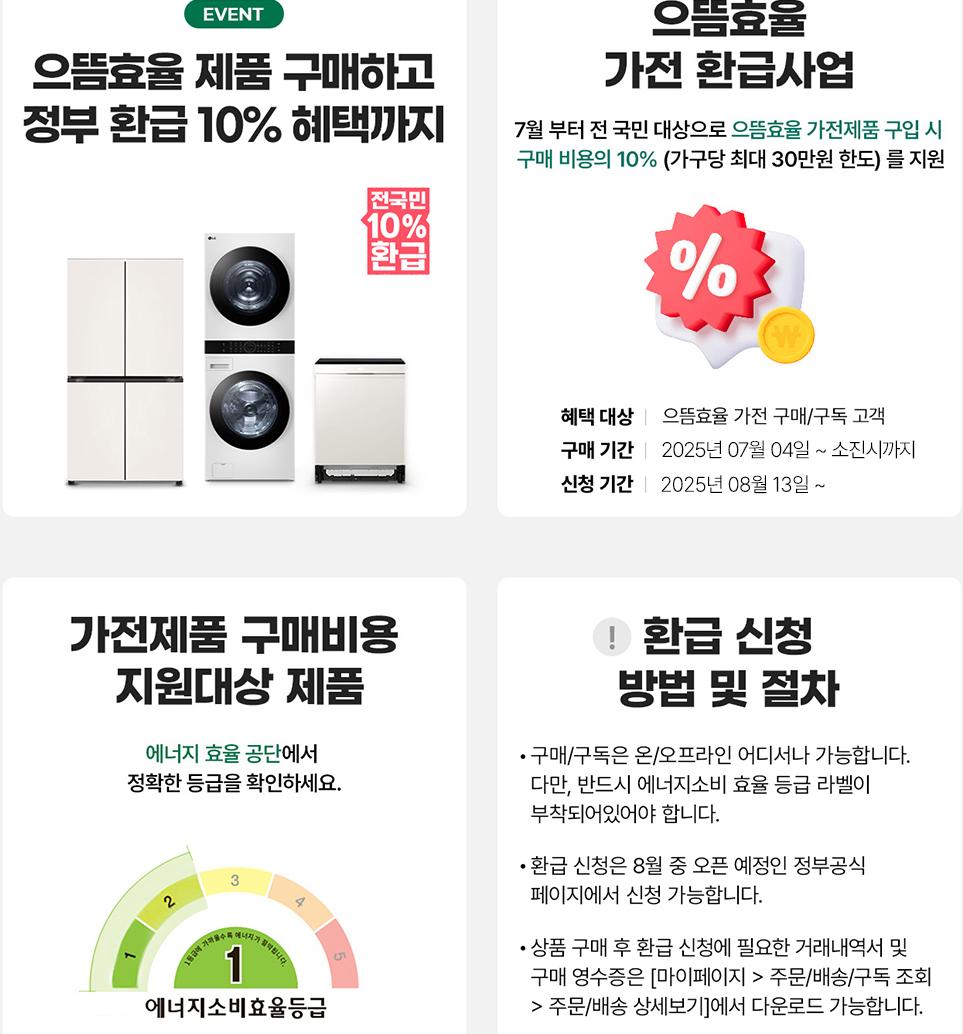 [LG공식 YKG몰] 으뜸효율 가전페스타 1등급제품 구독시 최대30만원 환급 > 국내핫딜