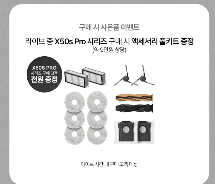 로봇청소기는 4종있을텐데 X50s Pro 시리즈만 액세서리 풀키트 받을수 있습니다.