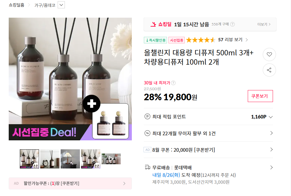 [11번가] 올챌린지 대용량 디퓨저 500ml 3개 (19,800원 / 무료)