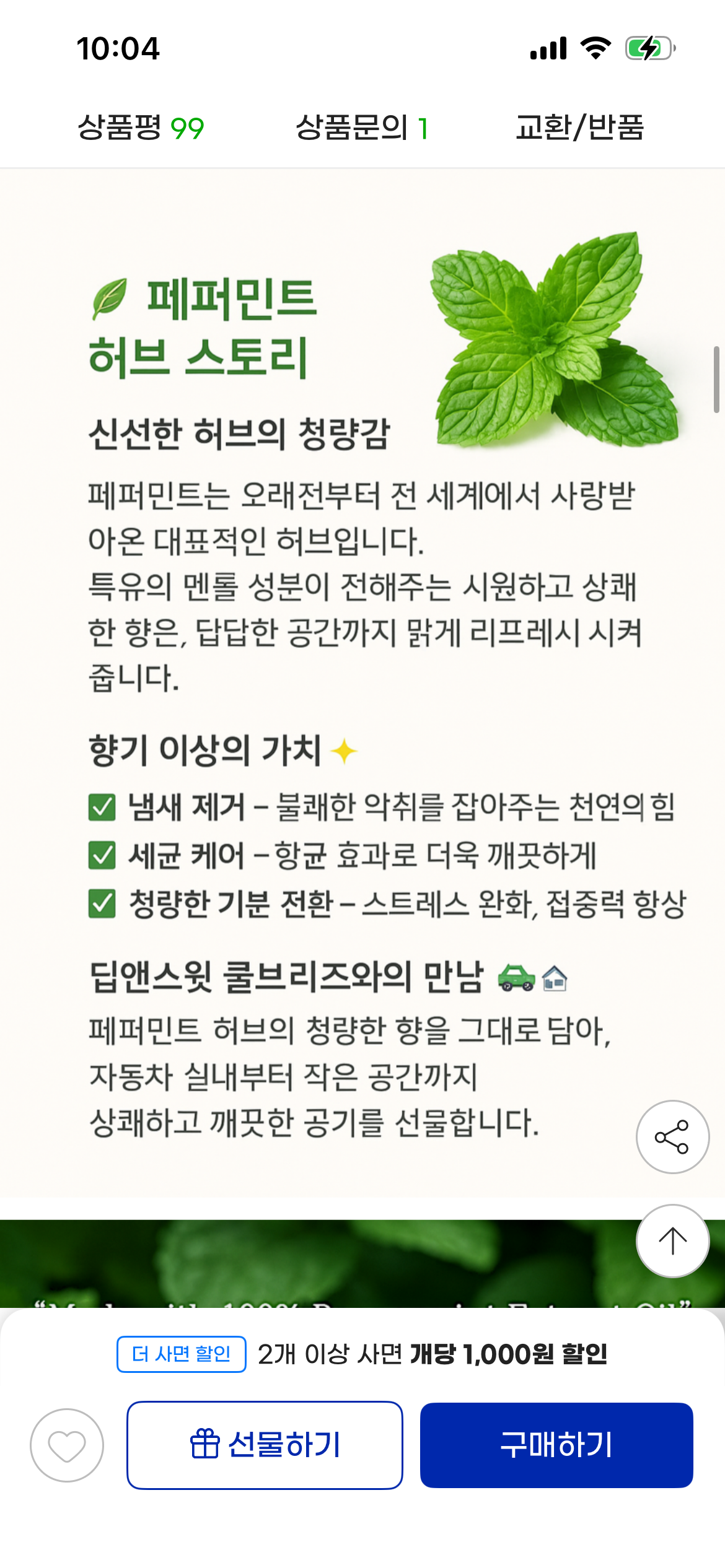 [지마켓] 딥앤스윗 쿨브리즈 페퍼민트향 방향탈취제 차량,실내용 (15,460원/무료) > 국내핫딜