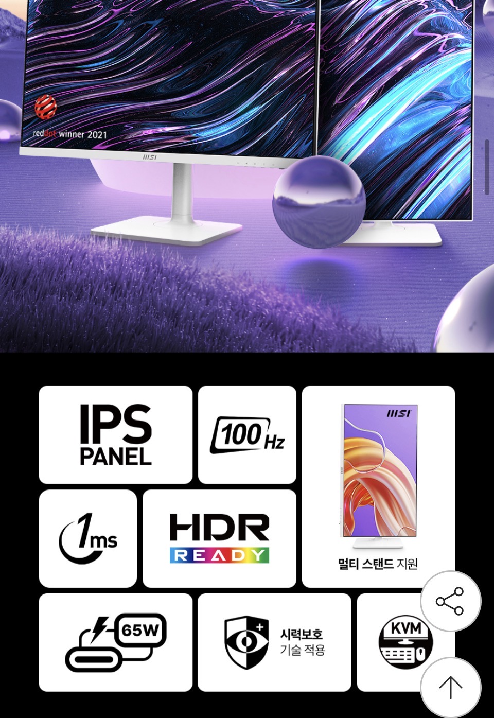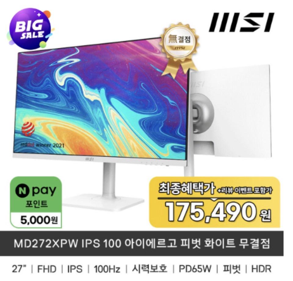 [G마켓] MSI MD272XPW IPS 100 아이에르고 피벗 화이트 무결점 (175,490원/무배)