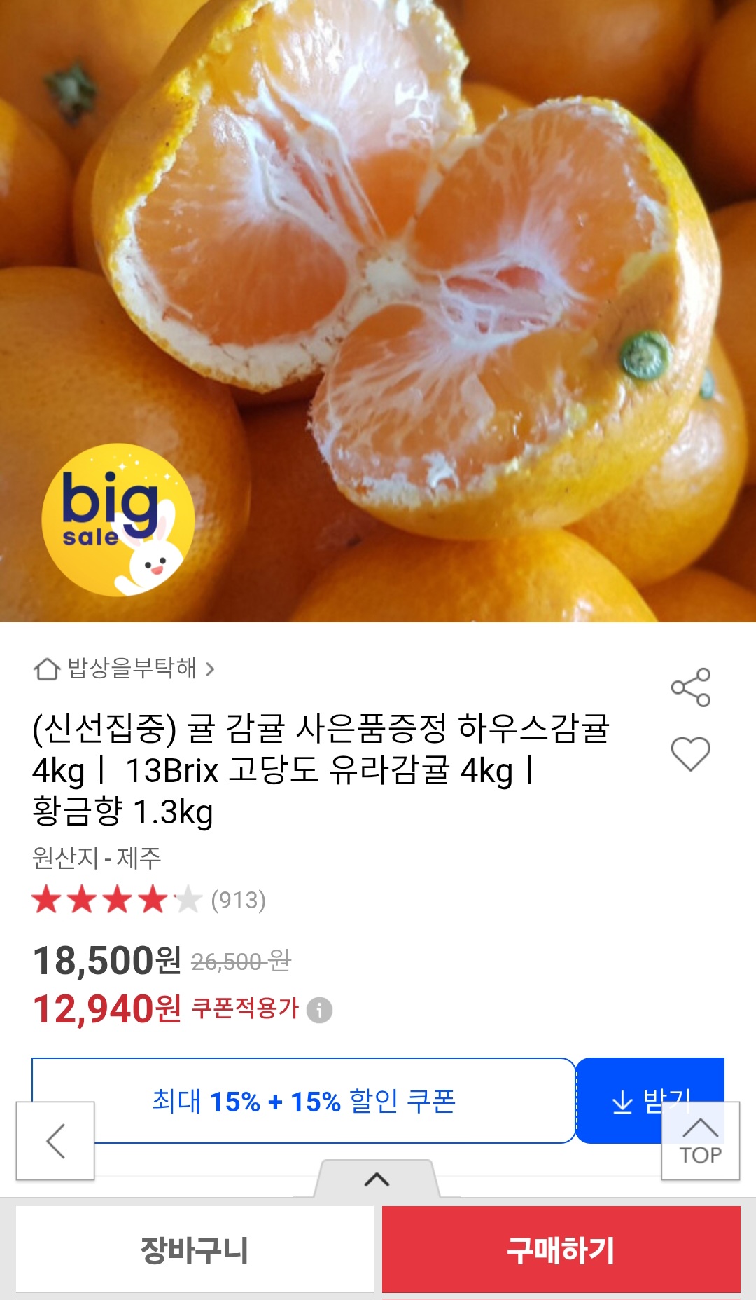 [옥션] 고당도 하우스감귤 4kg 로얄과 (12,940원/무배)