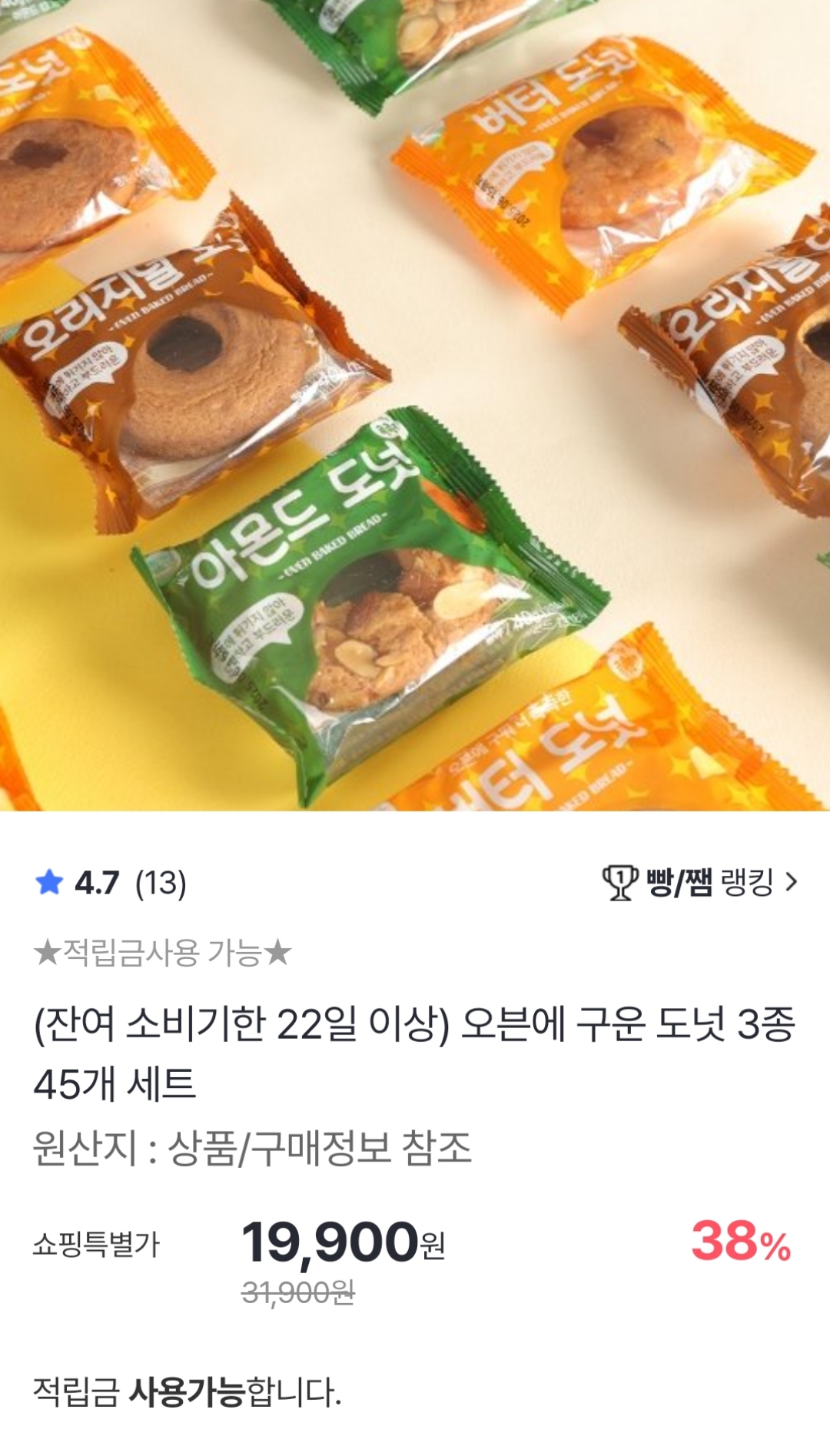 [홈앤쇼핑] The 촉촉한 도넛 3종 45개 세트 (19,900원 / 무료)
