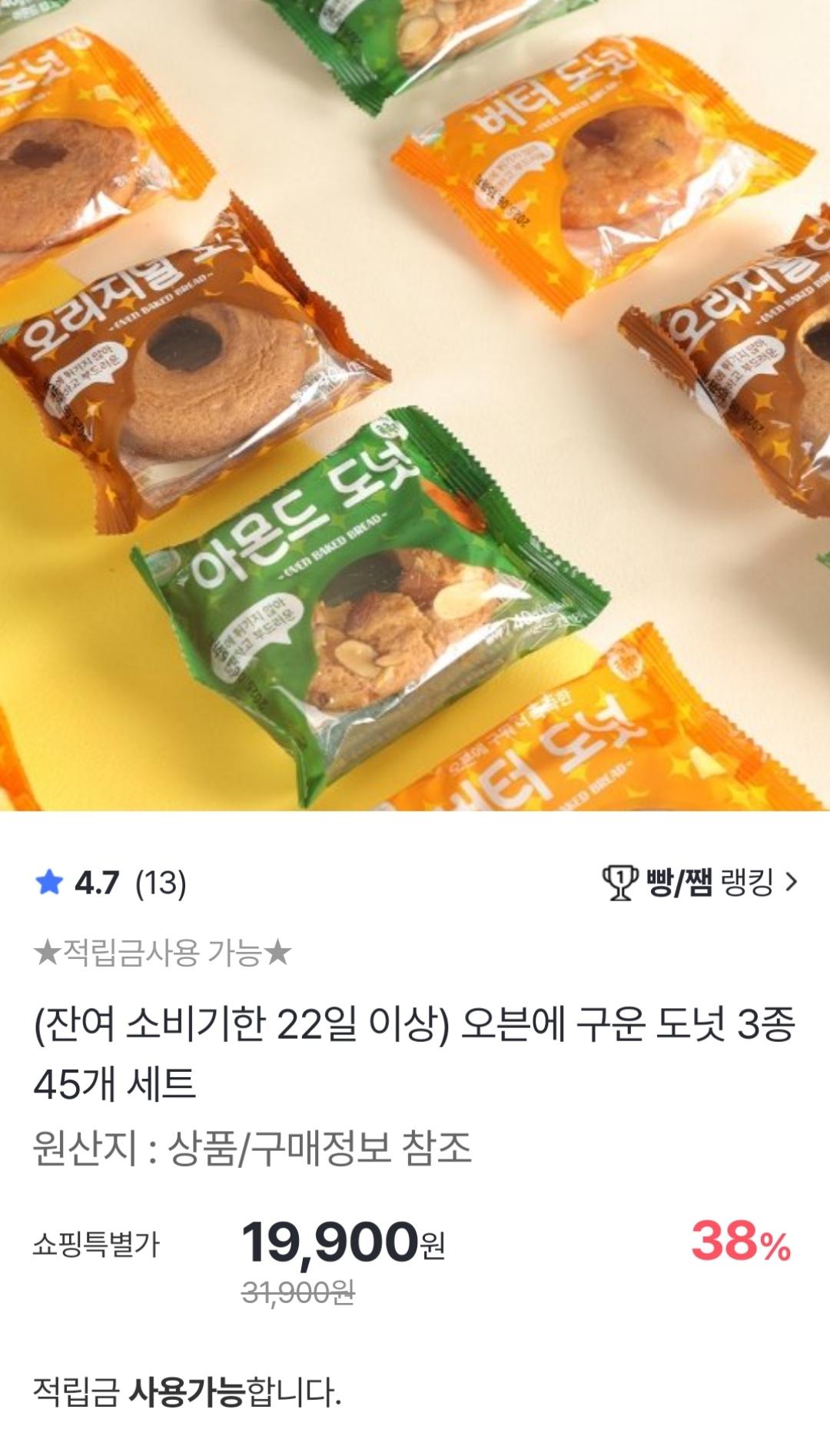 [홈앤쇼핑] The 촉촉한 도넛 3종 45개 세트 (19,900원 / 무료) > 국내핫딜