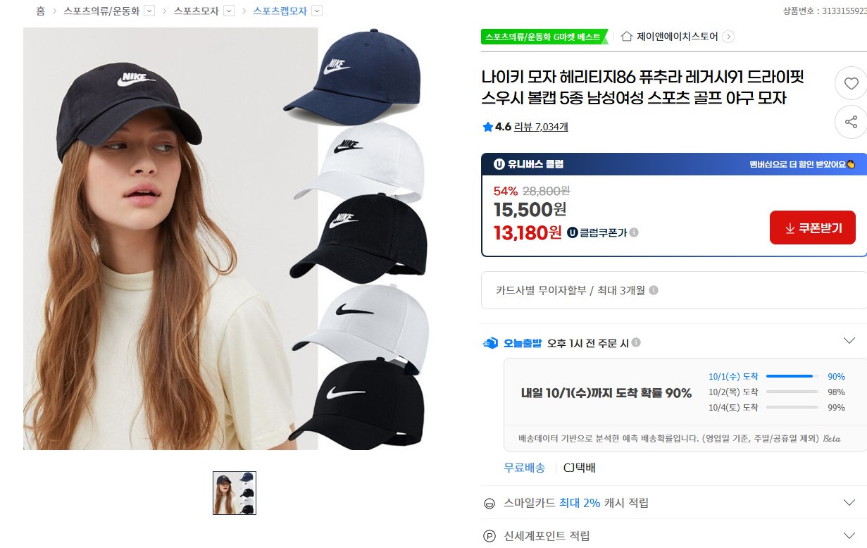 [지마켓] 나이키 모자 헤리티지86 퓨추라 레거시91 드라이핏 스우시 볼캡 5종 (13,640/무배)