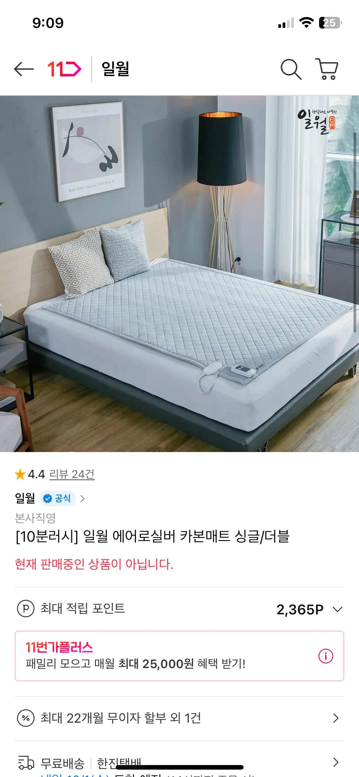 [11번가] 일월 에어로실버 카본매트 싱글/더블 (43,900원/무료)