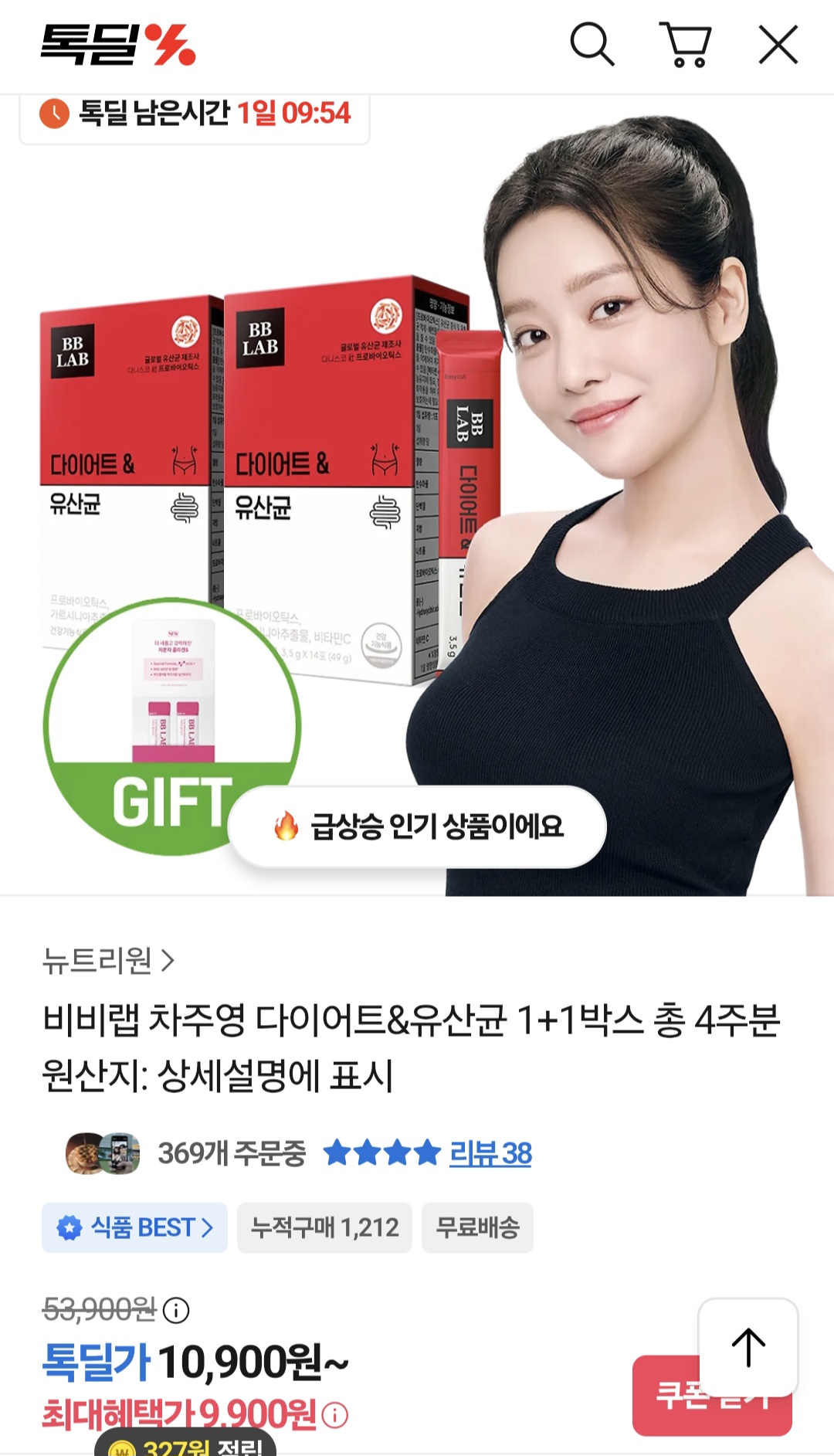 [톡딜] 뉴트리원 차주영 다이어트유산균 2박스 (9,900원/무배)