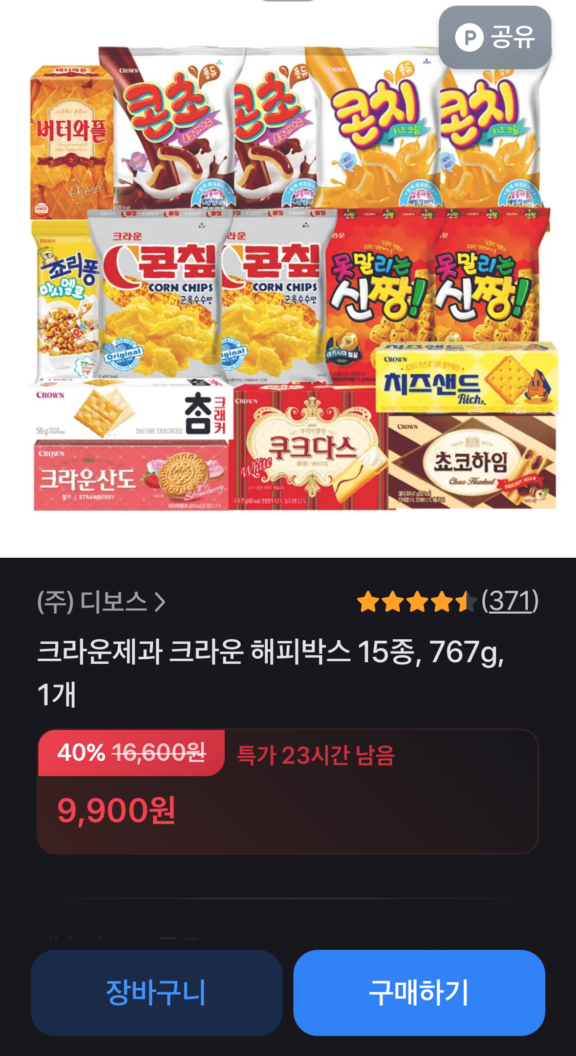 [토스쇼핑] 크라운제과 크라운 해피박스 15종, 767g, 1개 9,900원[무배]