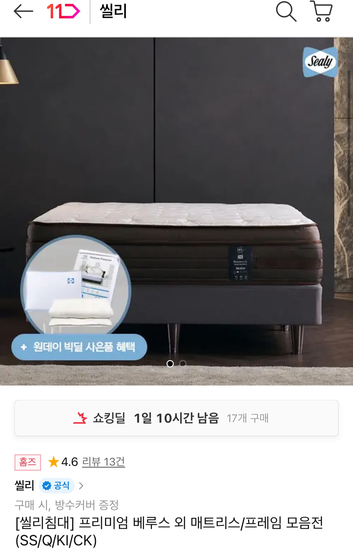 [11번가] 씰리 프리미엄 베루스 외 매트리스/프레임 모음전 (1,208,400원/무료)