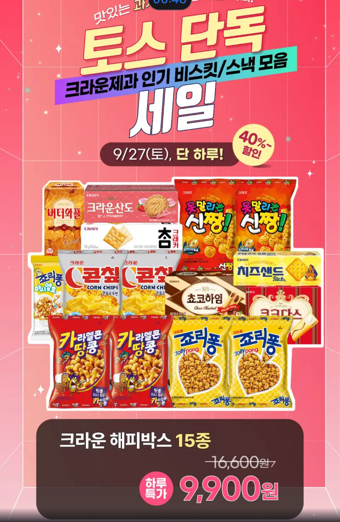[토스쇼핑] 크라운제과 크라운 해피박스 15종, 767g, 1개 9,900원[무배] > 국내핫딜