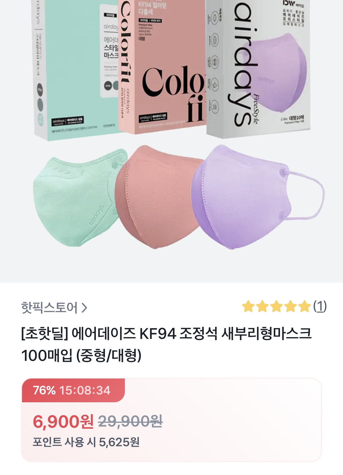 [토스] 조정석 KF94마스크 100매 중형/대형 임박핫딜 (6,900원/무배) > 국내핫딜