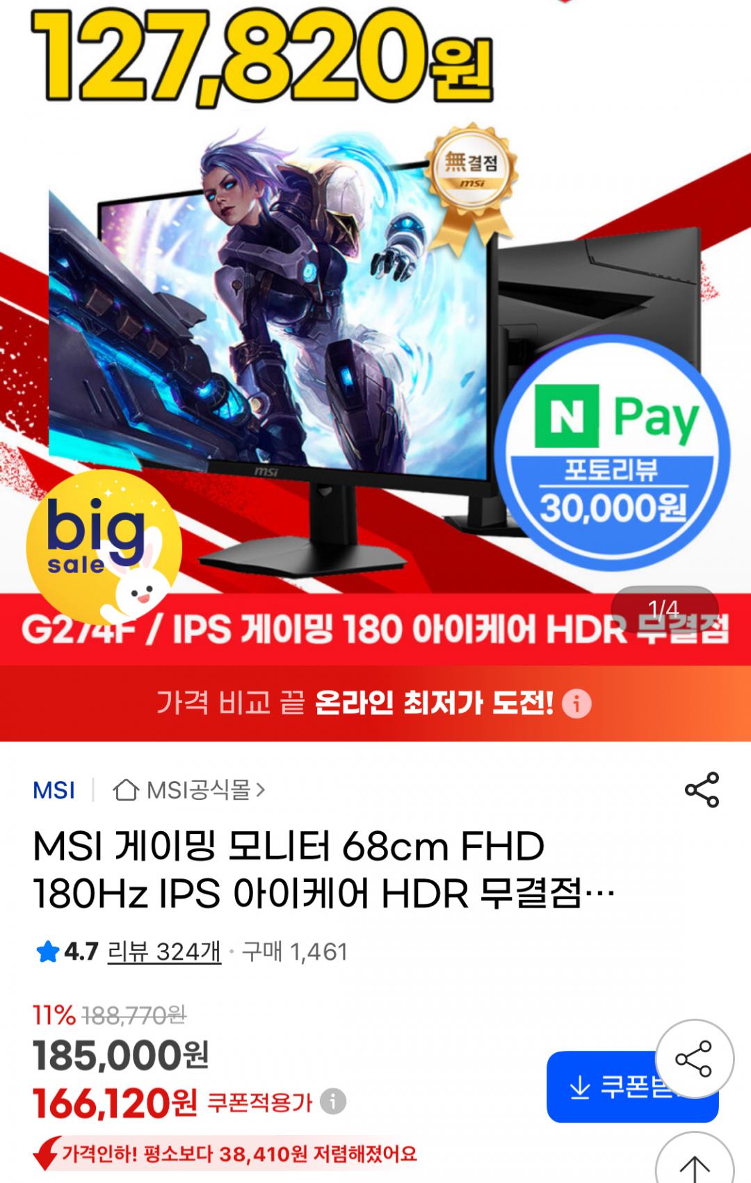 e스포츠 대회용으로 사용된 MSI 모니터 최종 12만원대에요!