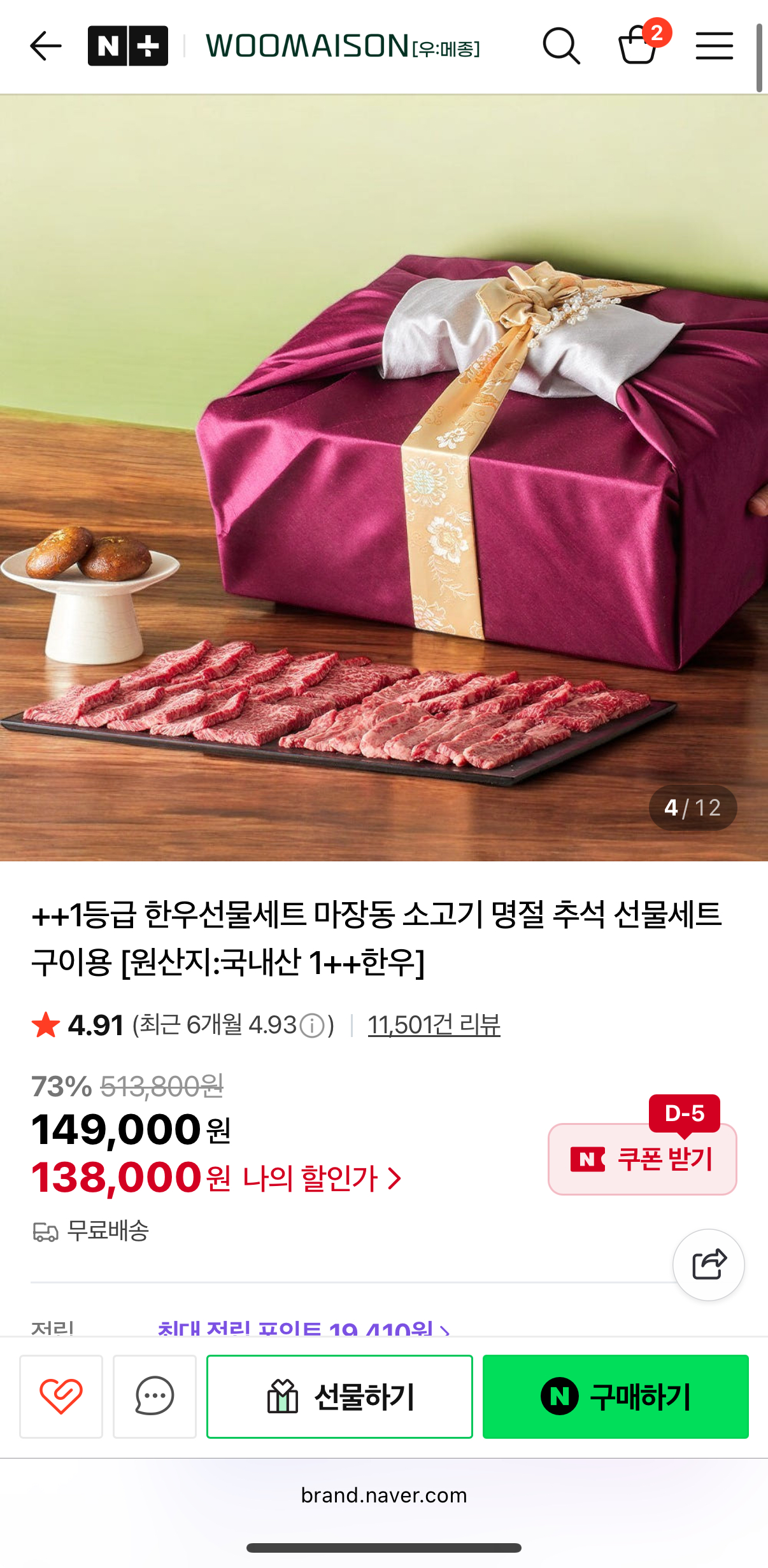 [스팜] ++1등급 한우 마장동 소고기 명절 추석 선물세트 구이용(138000/무배)