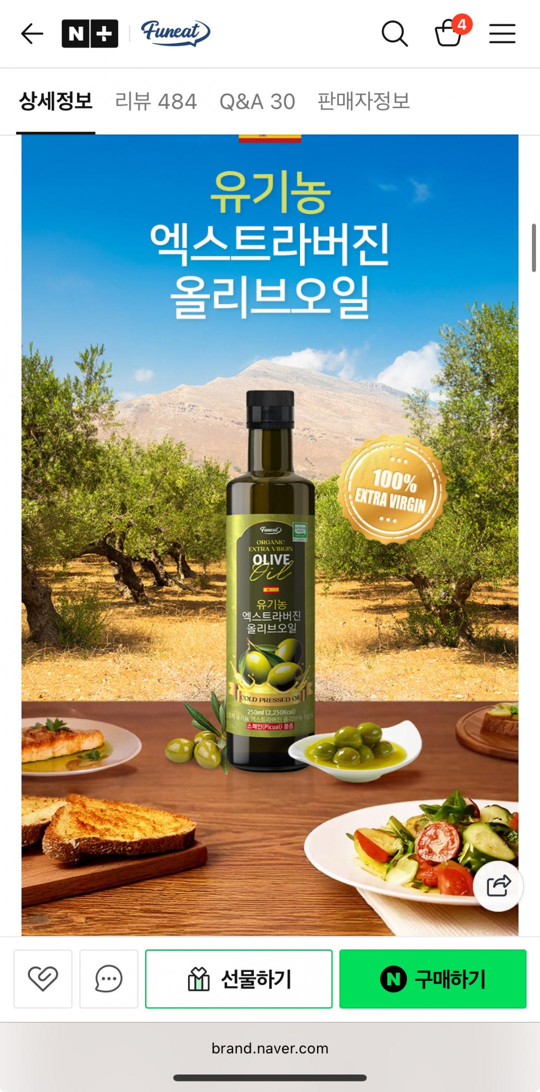 [네이버] 퍼니트 이상우 유기농 엑스트라버진 올리브오일 올리브유 피쿠알 250ml, 2개(24800/무배)