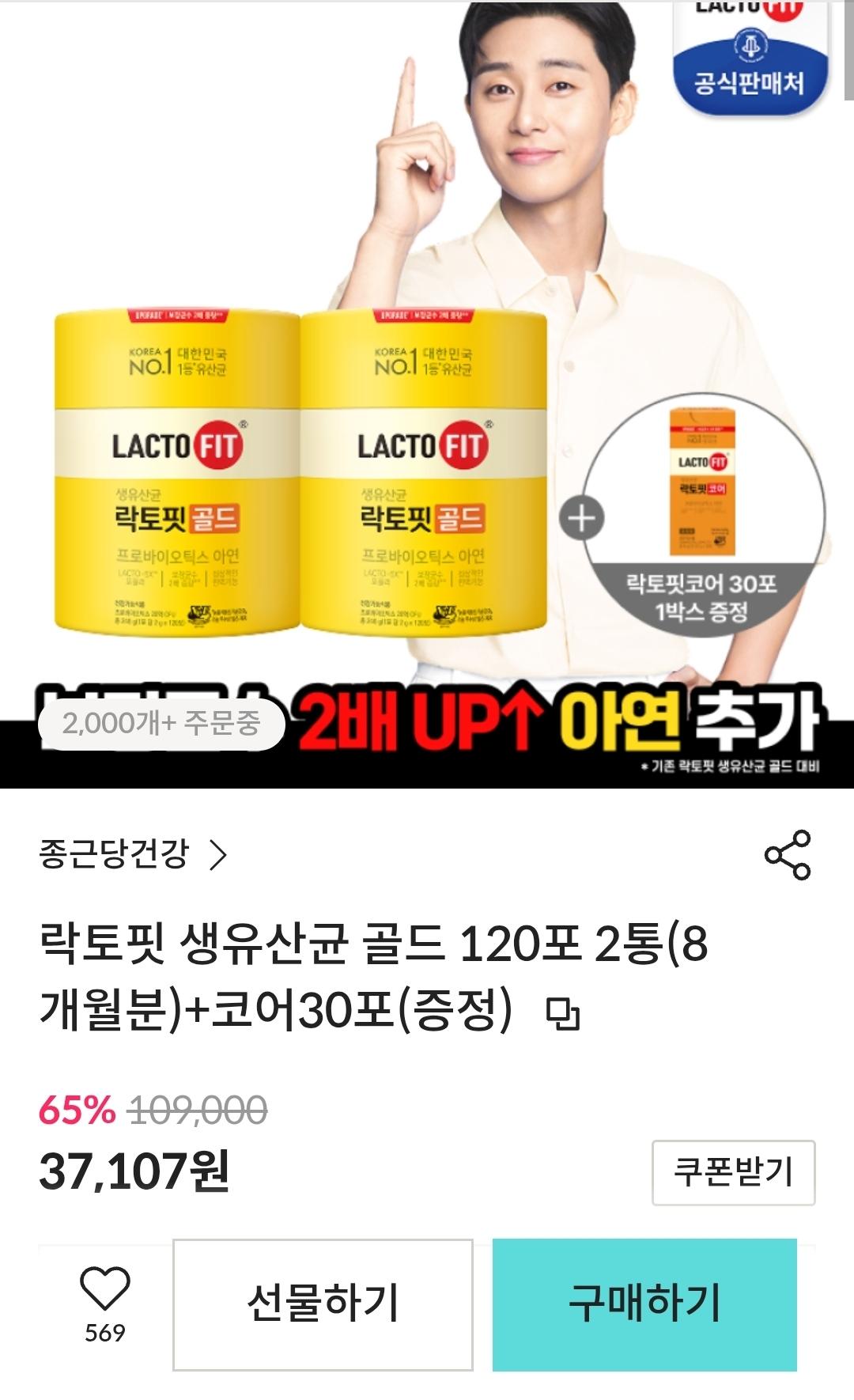 띵샵) 락토핏 생유산균 골드 120포 2통(8개월분)+코어30포(증정) 37,107원