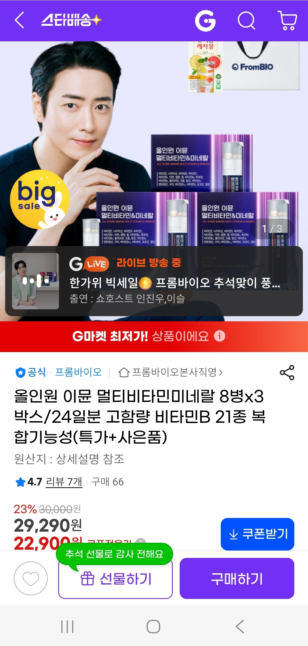 G마켓) 올인원 이뮨비타민 8개입 3박스 22,900 / 무배
