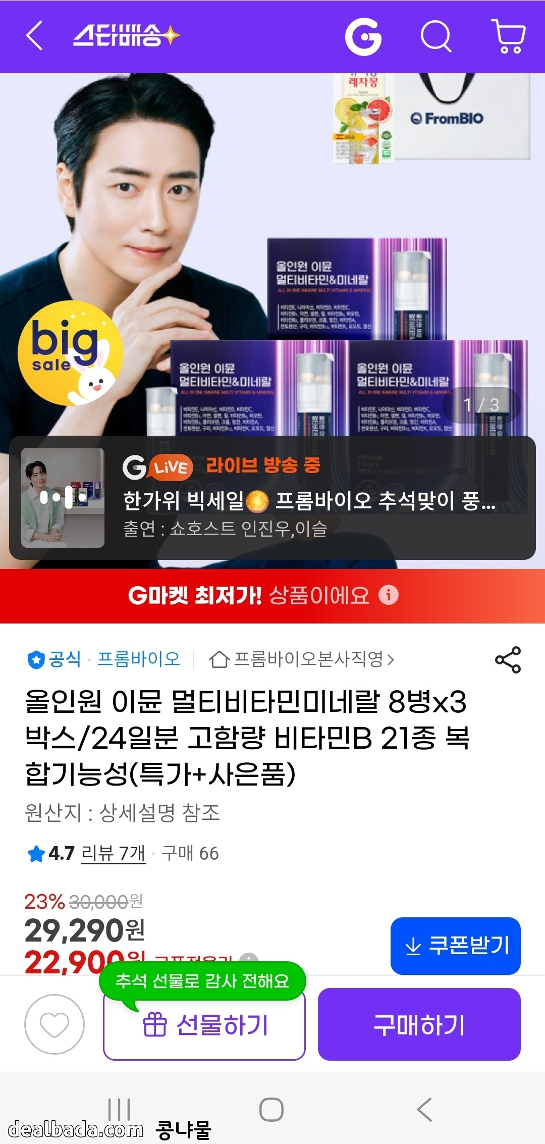 G마켓) 올인원 이뮨비타민 8개입 3박스 22,900 / 무배