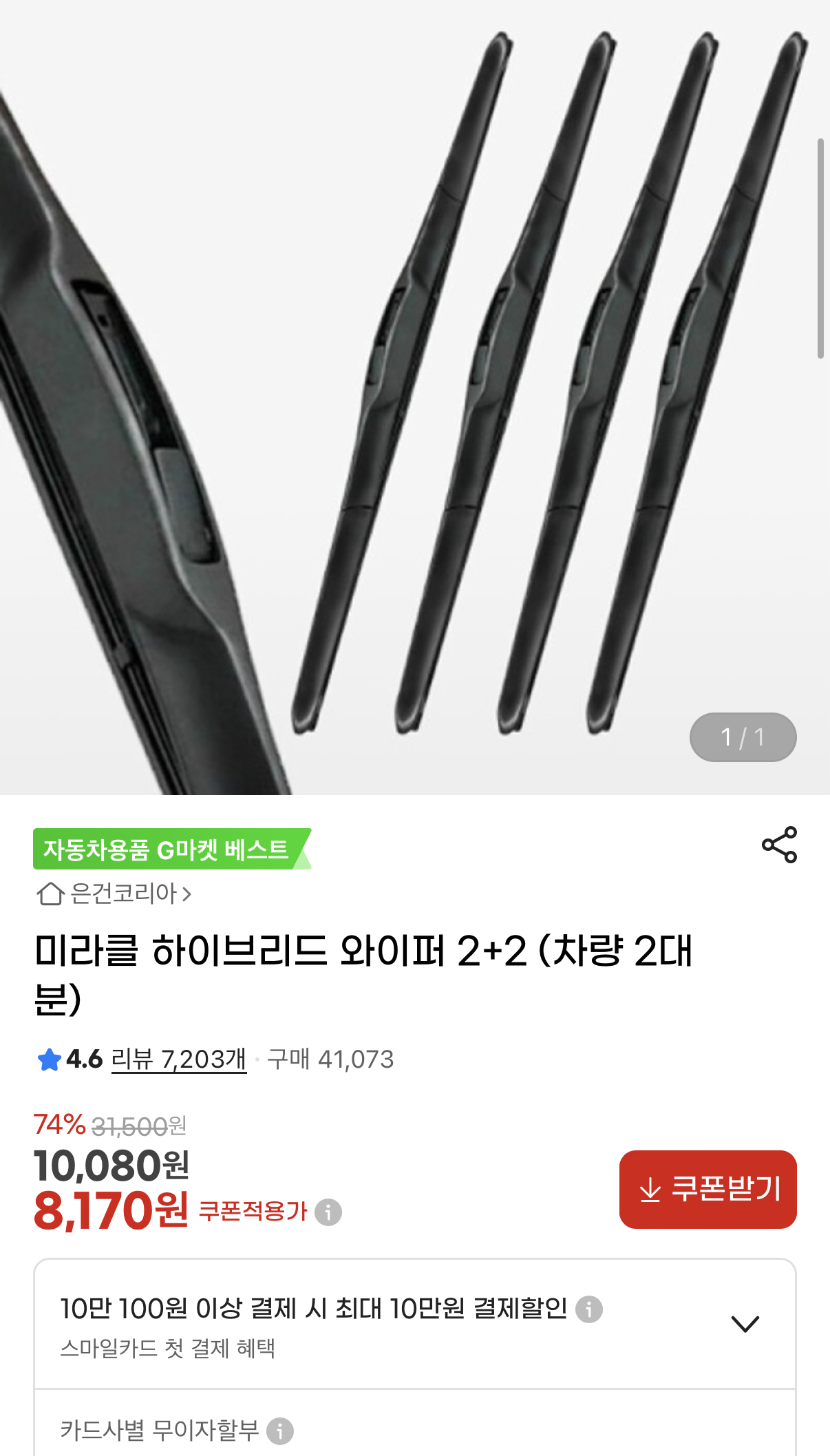 [지마켓] 미라클 하이브리드 와이퍼 2+2 구성 차량 2대분 (8,170원/무료)