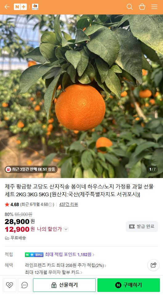 [네이버] 핫딜 산지직송 제주 고당도 황금향 3KG (12,900원/무료) 댓글1개
