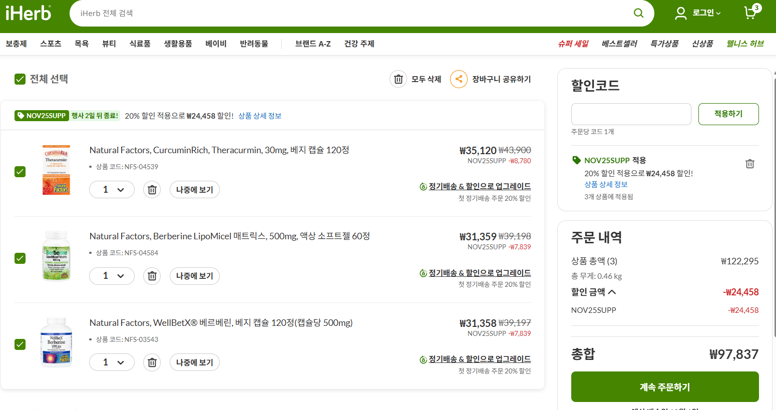 [아이허브] 내츄럴팩터스 베르베린 흡수율 5배차이나는 영양제
