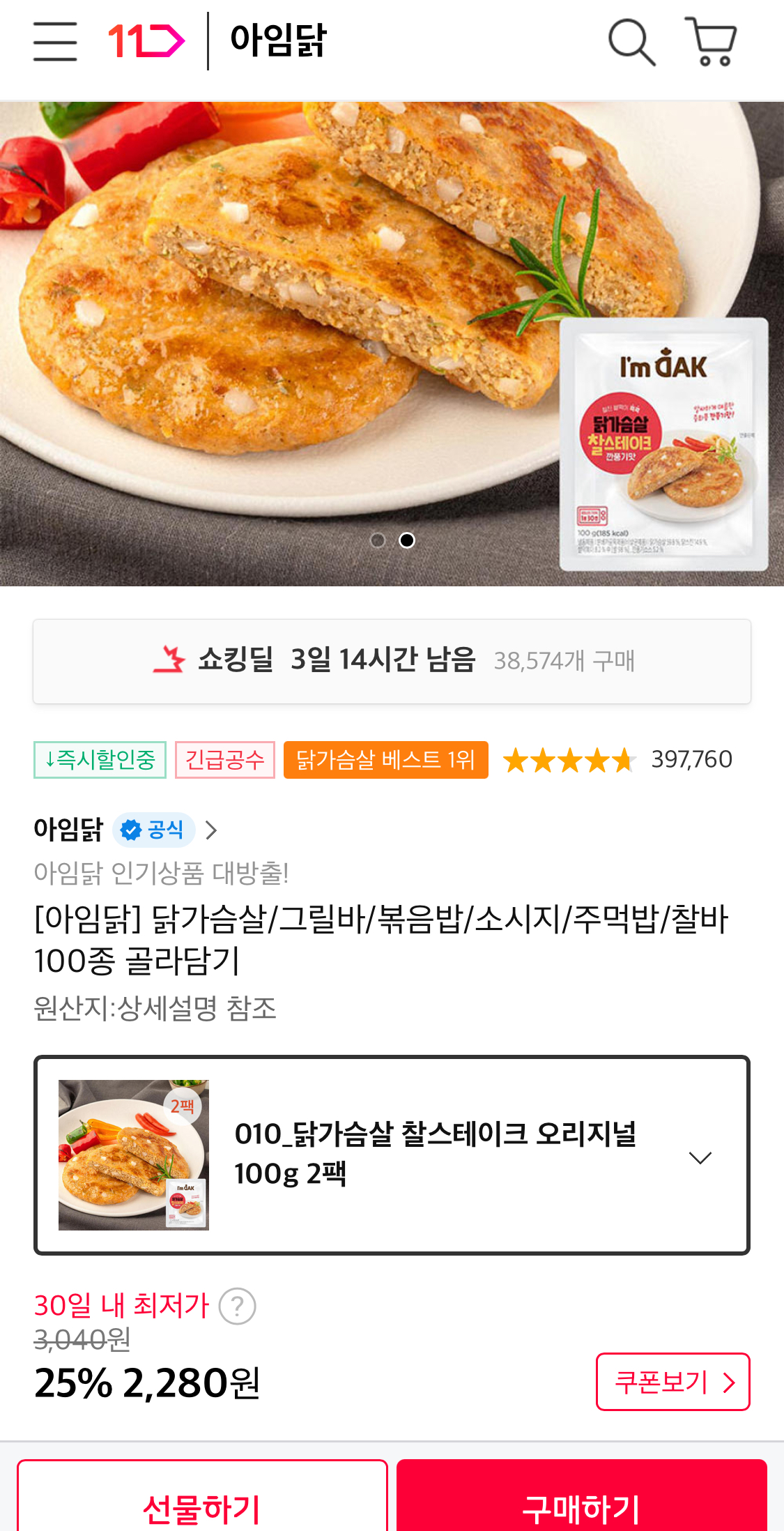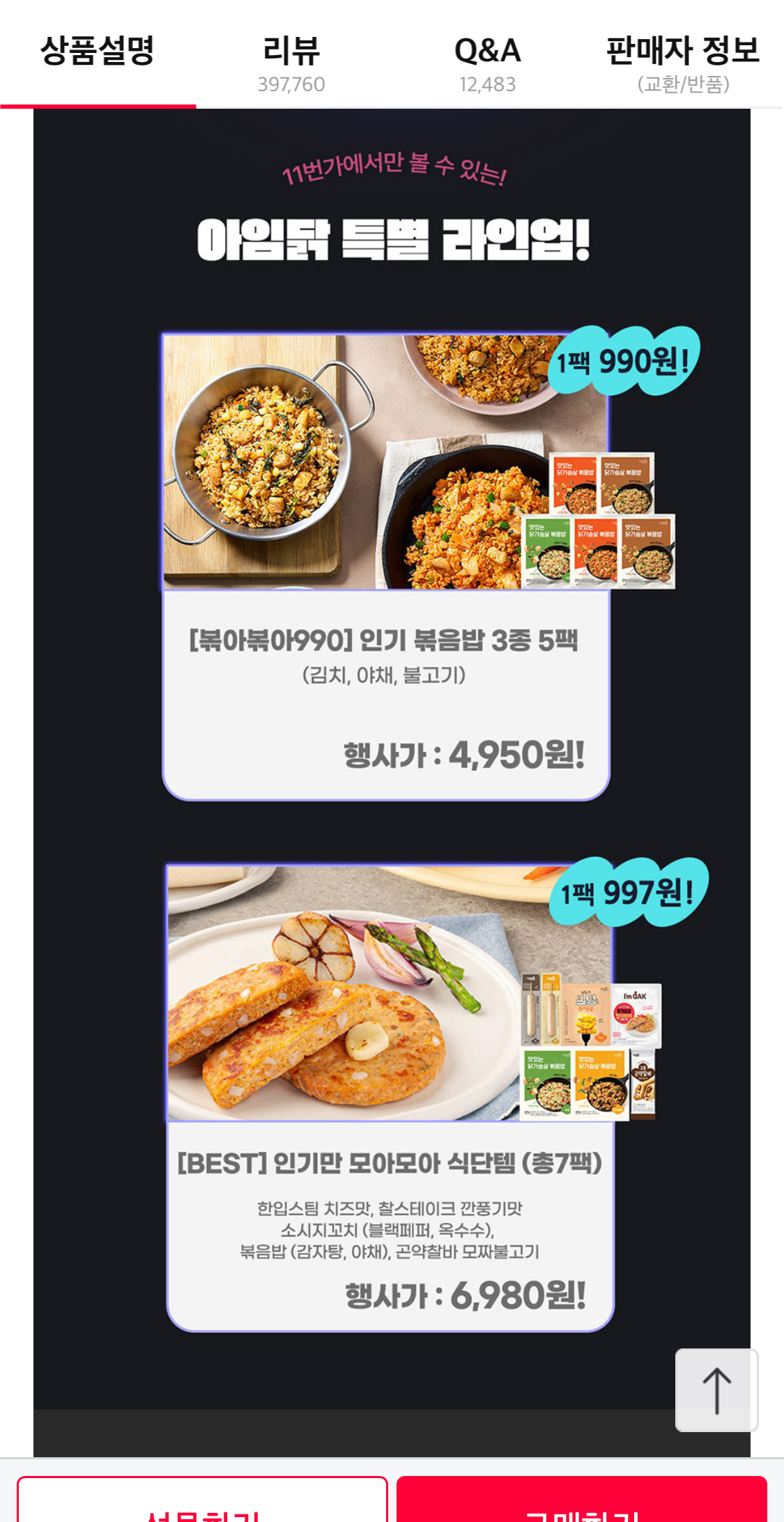[11번가] 아임닭 닭가슴살 모음 100종 (4,950원/유료) > 국내핫딜