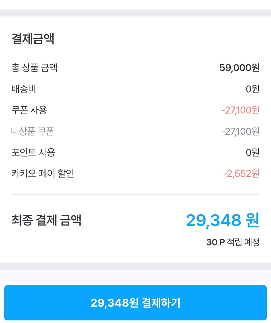 링크 들어가서 카카오페이할인까지 받으면 29,348원 나옵니다