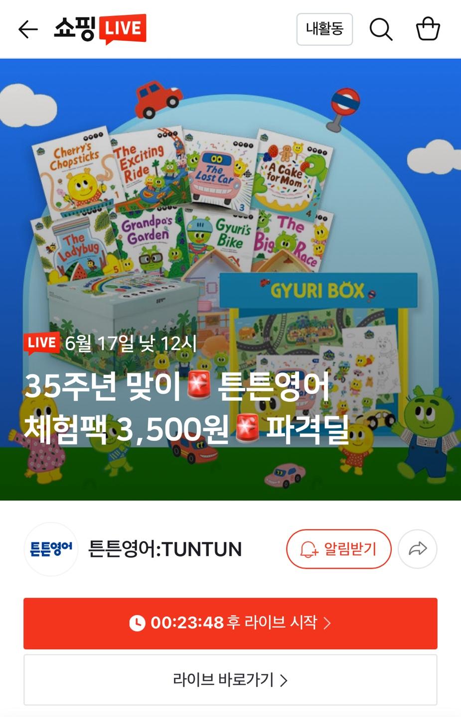 영어전집 3대장으로 유명한 튼튼영어 35주년 기념으로 규리박스 체험팩 특가 중입니다