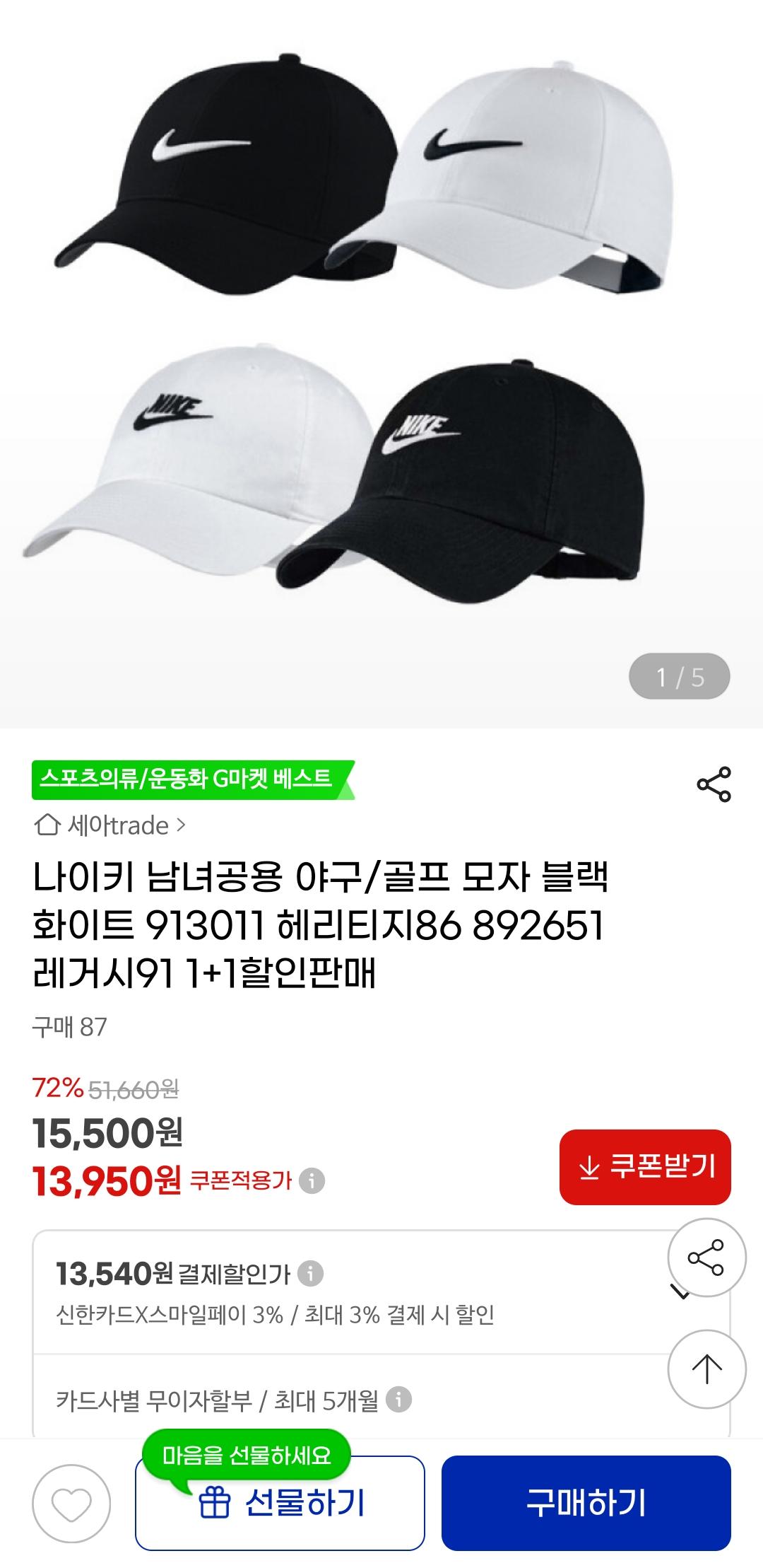 지금 지마켓에서 나이키 골프모자 레거시 91, 헤리티지86 할인하네요.