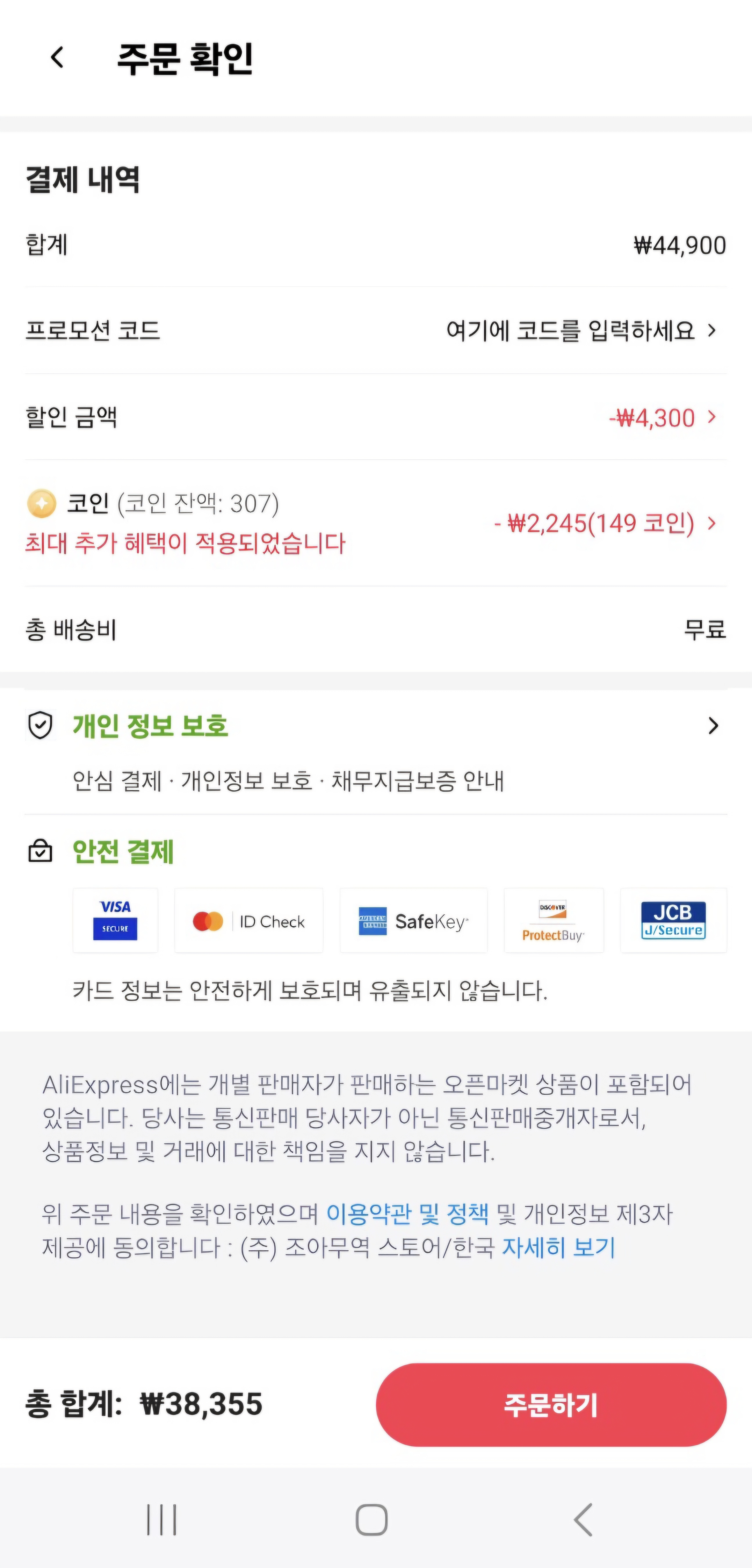 코인 있이시면 코인할인 2,245원까지 받아서 38,355원에 구매 가능해요