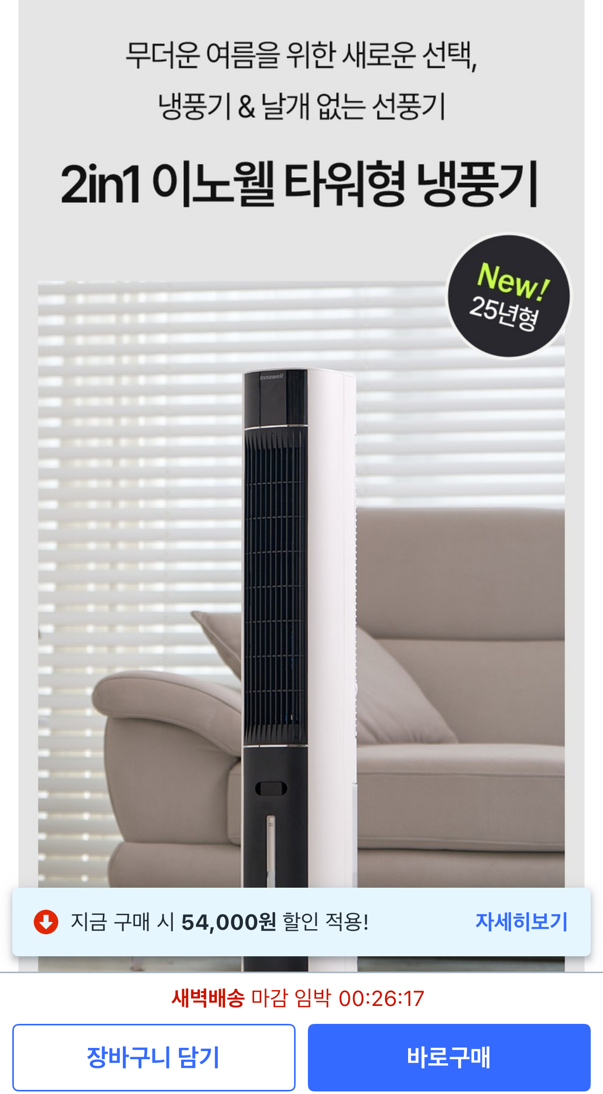 저는 거실 말고 작은 방에서 쓸 선풍기 대신해서 냉풍기 하나 구매했네요