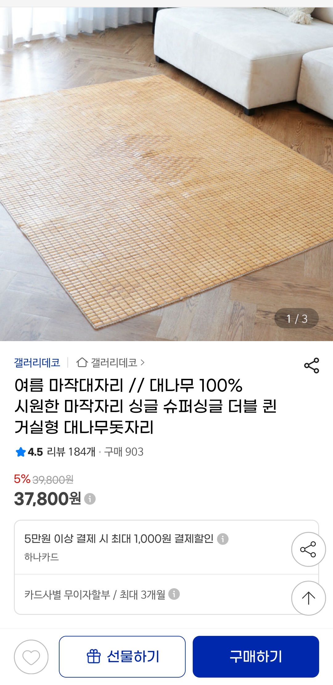 [지마켓] 여름 마작 대나무 대자리 (37,800/무료)