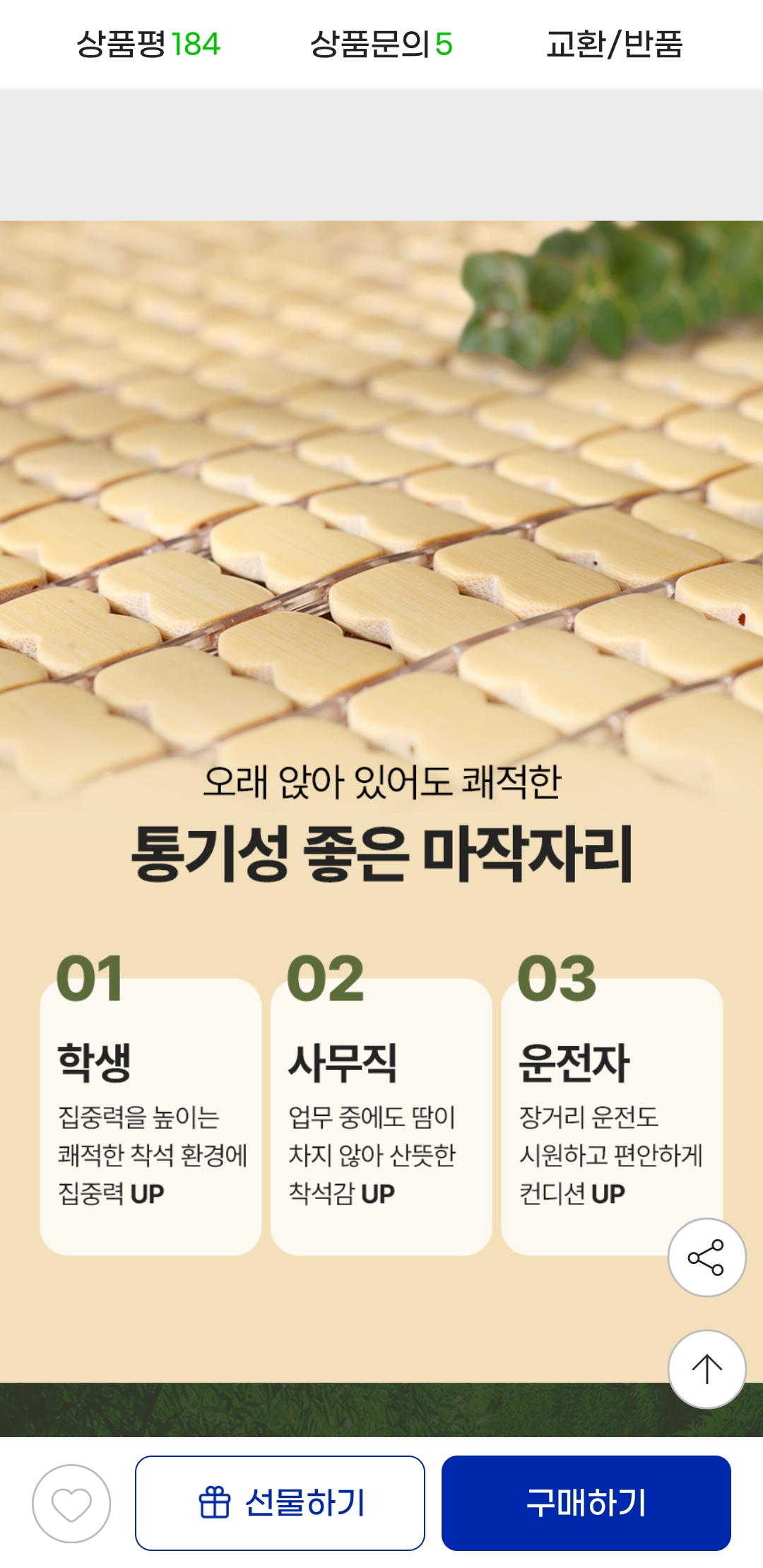 내구성 좋은 대나무 겉대로 만든거라 시원합니다.