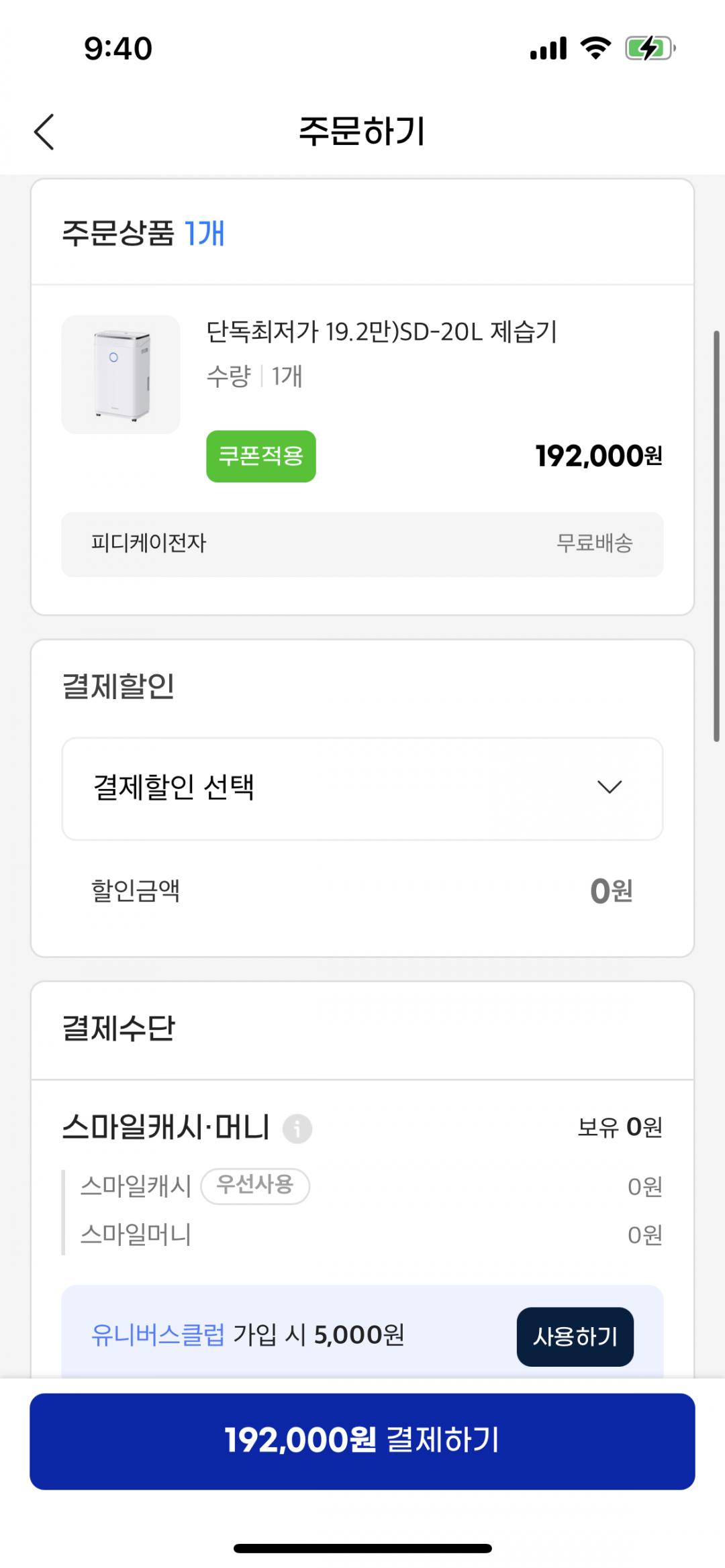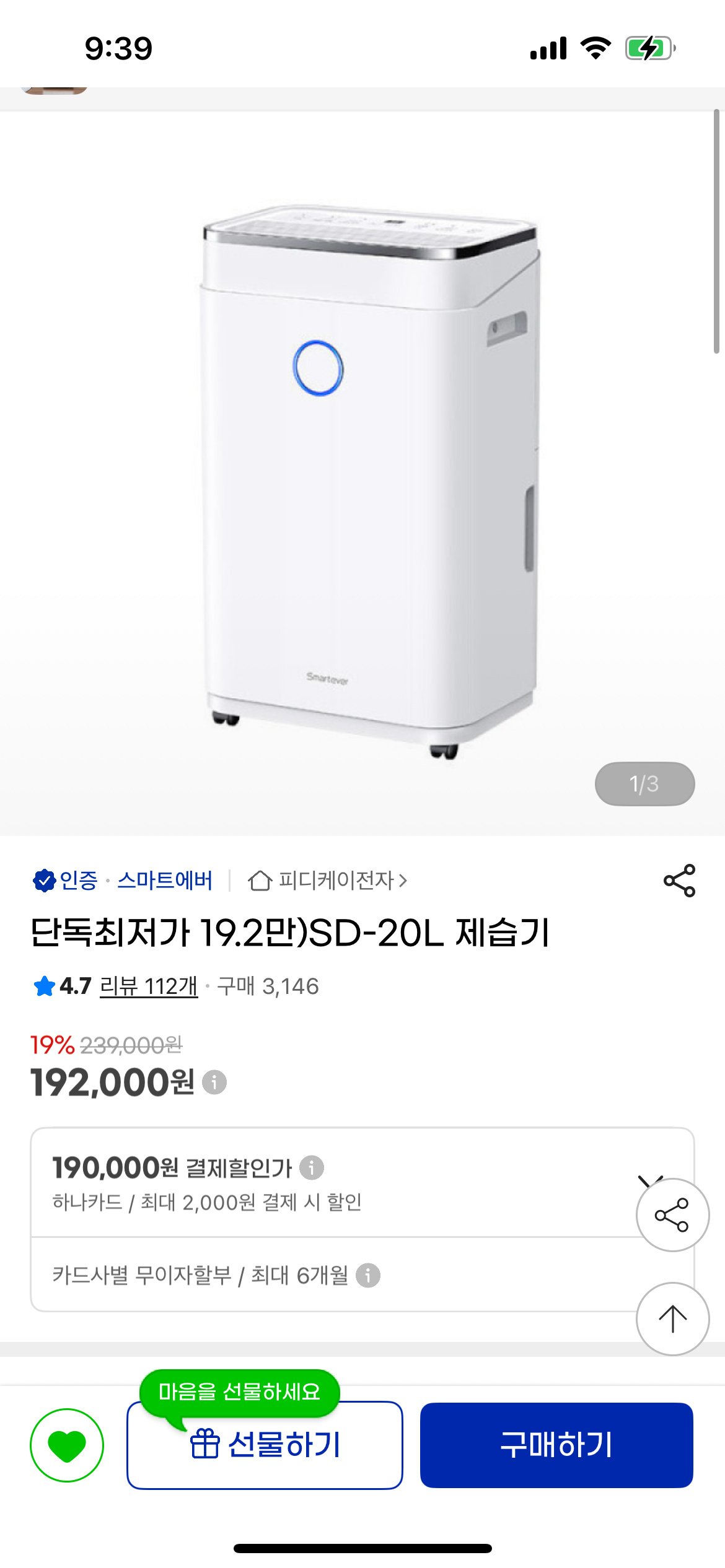 스마트에버 제습기 20L짜리 19만 2천원입니다.