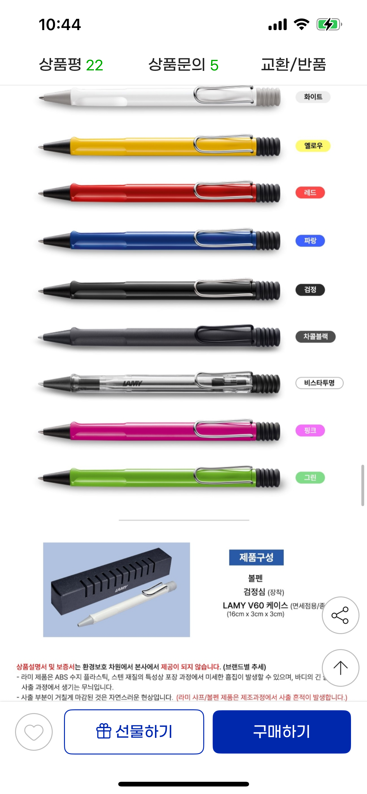 [지마켓] 라미 사파리 볼펜 V60 케이스 포함 (18,810원/무료)