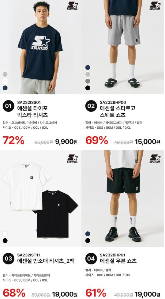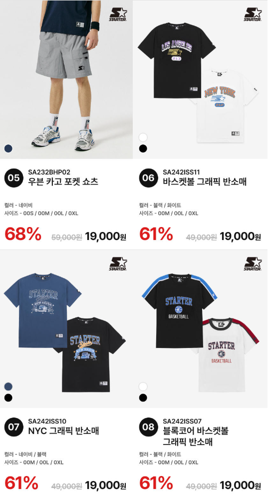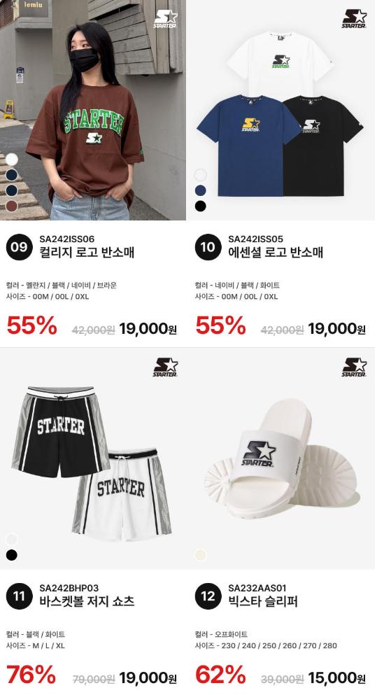 [11번가] 스타터 블랙라벨 반팔/스웨트 쇼츠 12종 60분러시 (9,900원 / 무료)