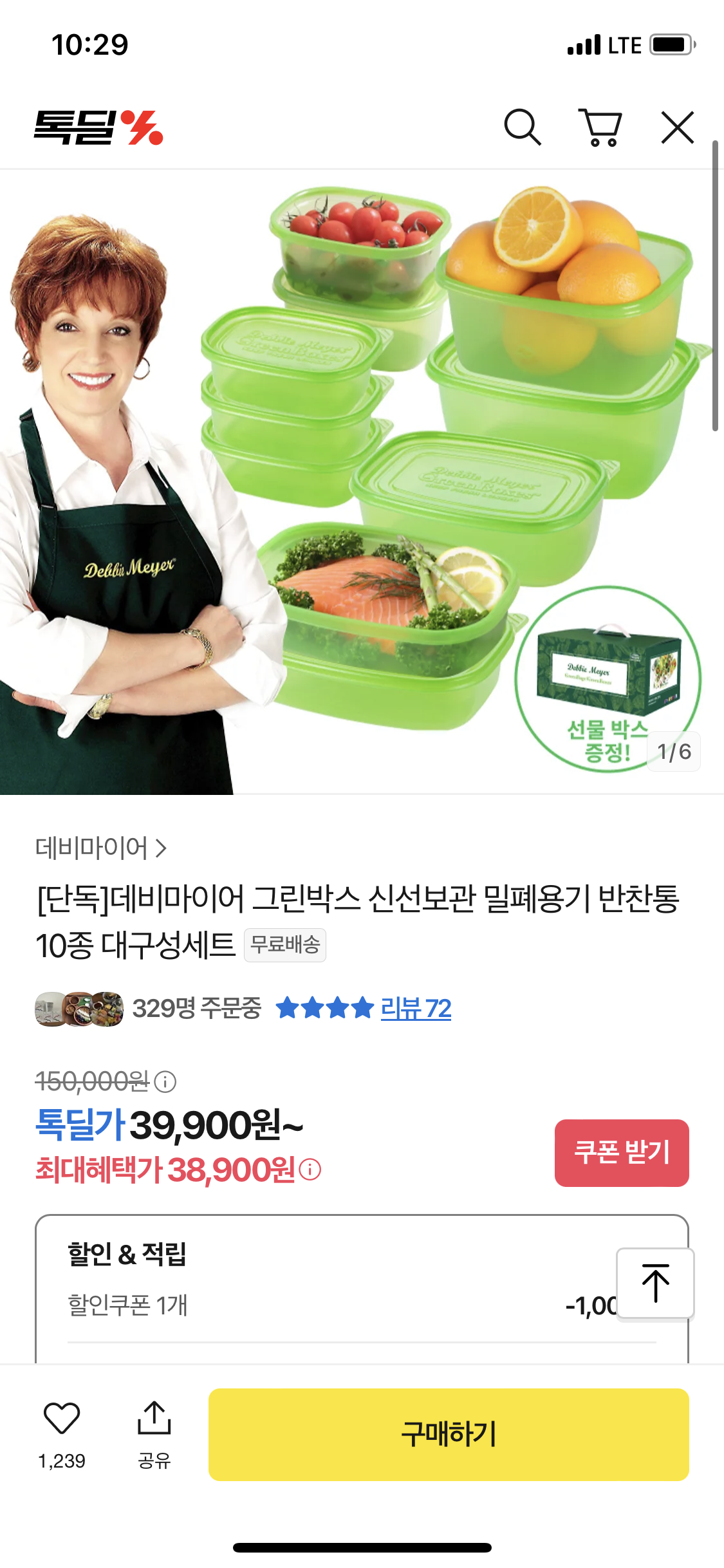 [톡딜] 그린박스 신선보관 밀폐용기 반찬통 10종 (38,900원/무배) > 국내핫딜