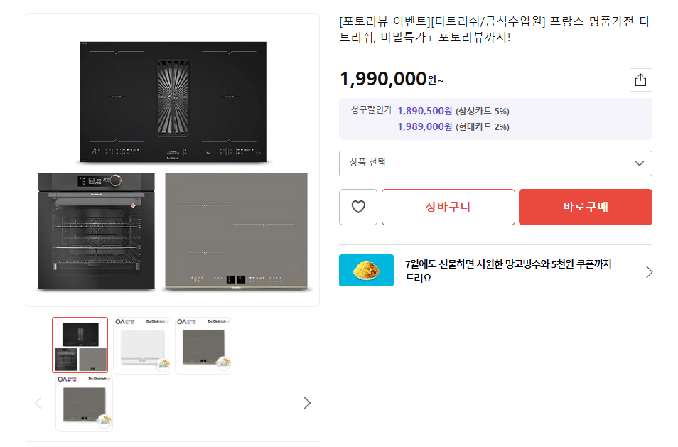 프리미엄 주방으로 구성하시려는 분에게는 좋은 기회네요.